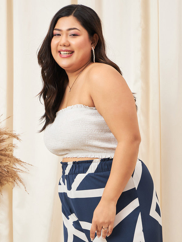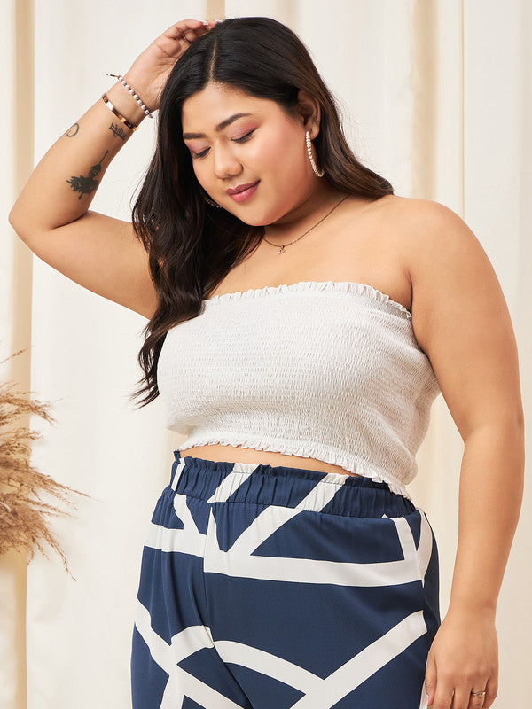 Berrylush Curve Women Solid White Off-Shoulder Neck Sleeveless Smocked Crop Tube Top