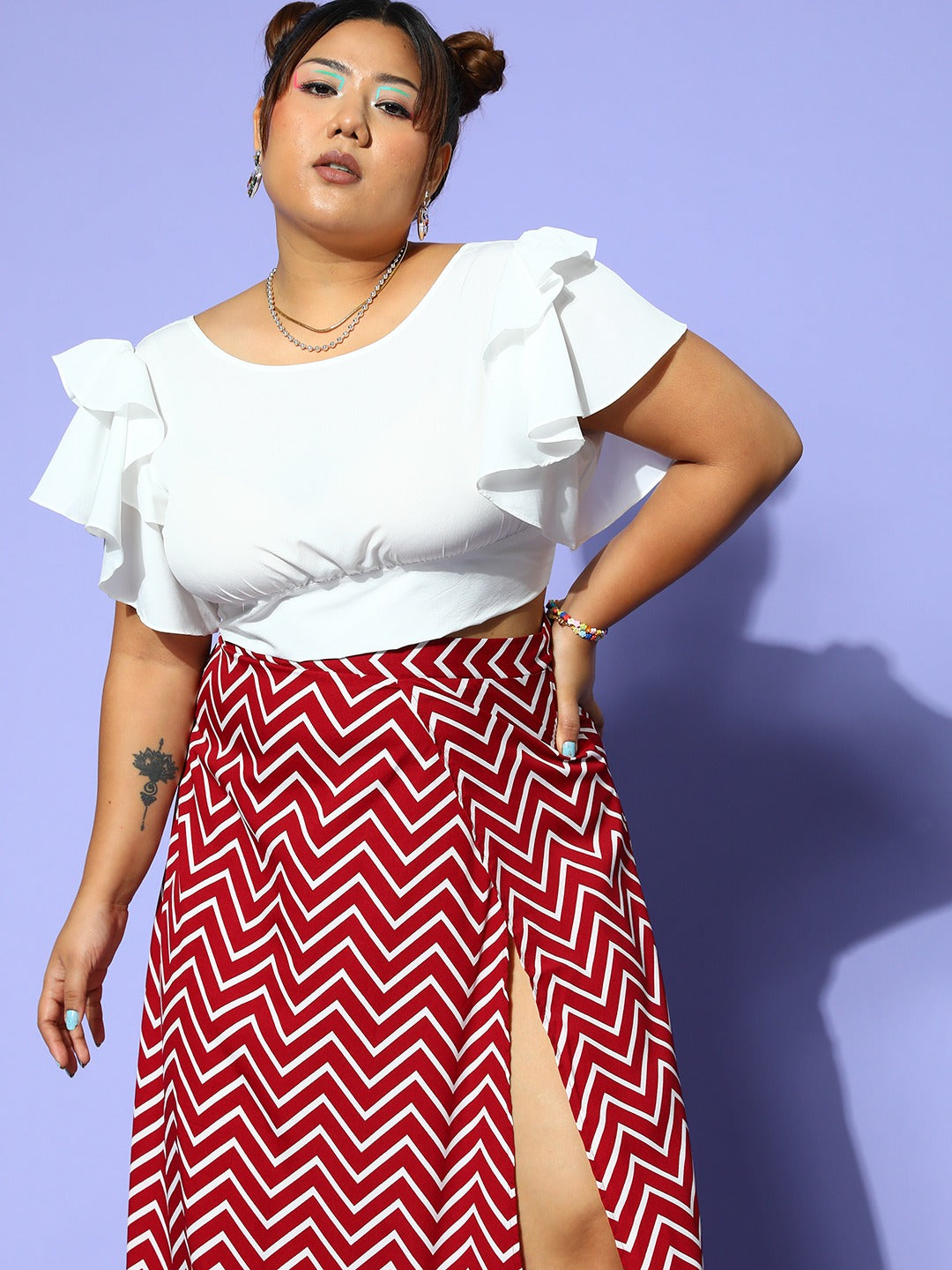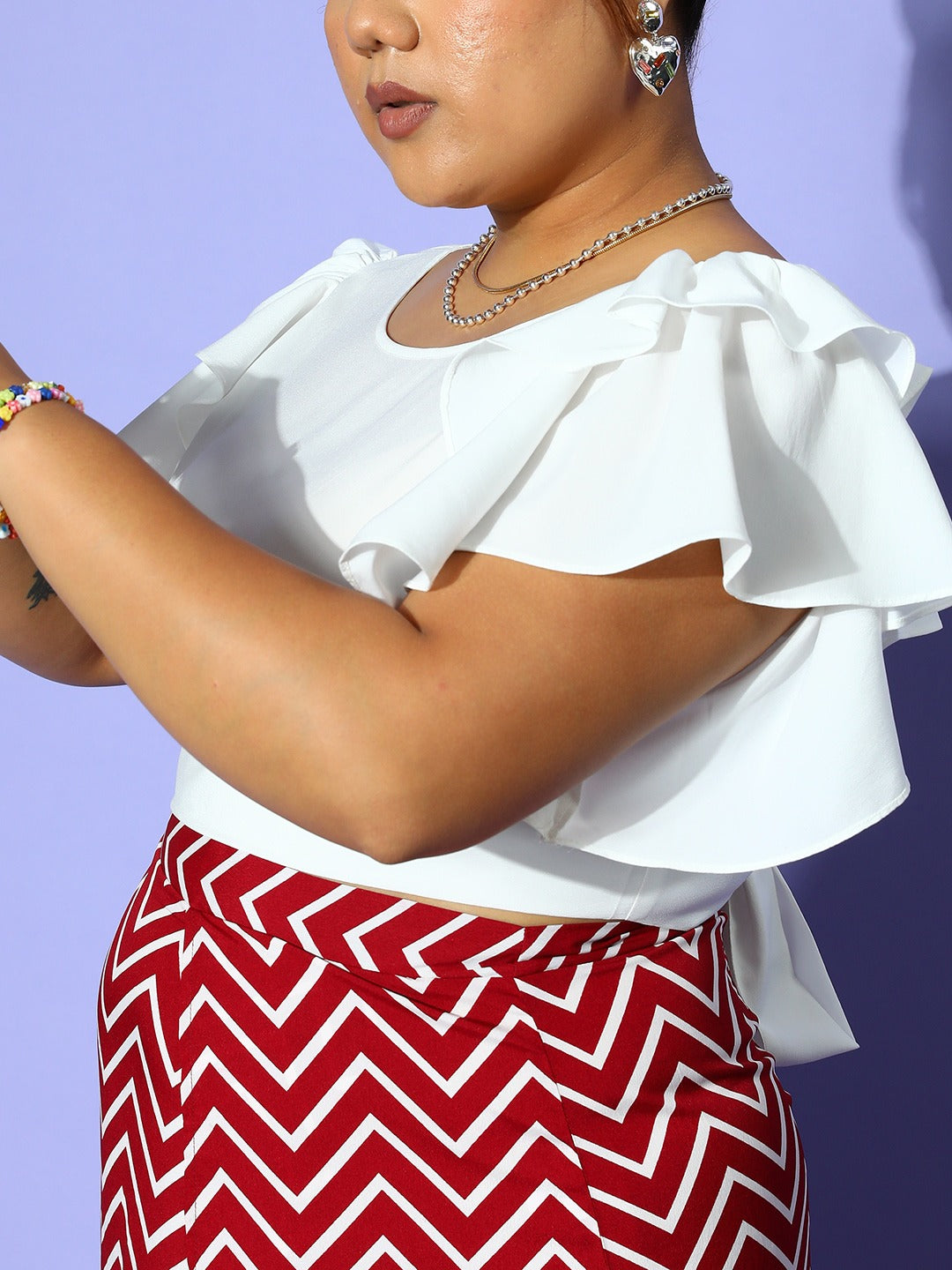 Walk in confident by elevating your style with the perfect amount of elegance and chicness with this stunning Solid White Crepe Blouson Crop Top designed by Berrylush. Beautifully tailored in a blouson style that gives the top a bold yet feminine look while elegantly showing off your natural curves. Fashioned with a round neck design that lends this top a breathable structure with a modest style statement to your neckline. Also, the cropped length makes this top appear exotic with an alluring disclosure to your waist while keeping you cool and comfy. Team it with a red midi skirt, a pair of block heels, matching earrings, and a sassy handbag for a bewitching look to attend an outdoor picnic.