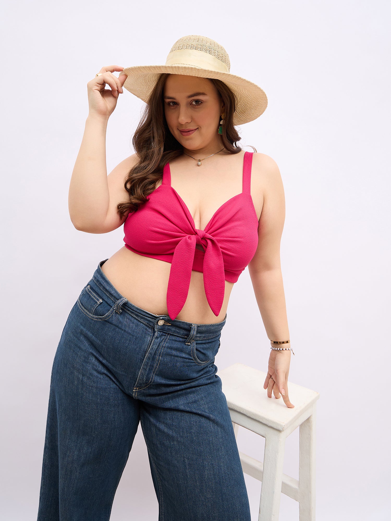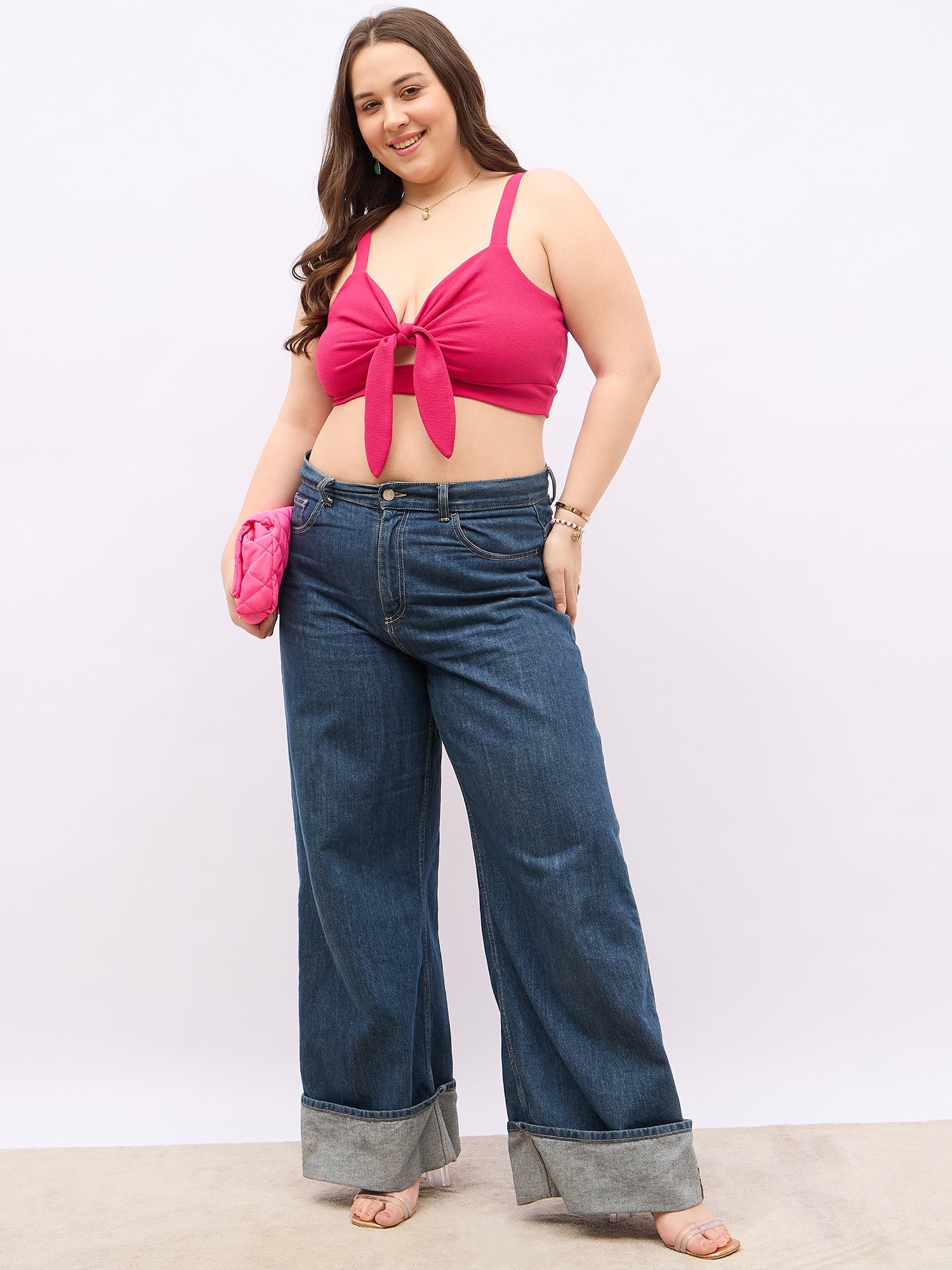 Discover a perfect blend of style and comfort with the Solid Pink Tie-Up Neck Sleeveless Front Twisted Crop Top by Berrylush Curve. This chic piece features an attractive tie-up neckline that complements its modern sleeveless design, making it ideal for warm days out or relaxed gatherings with friends. Crafted from soft, breathable polyester in a vibrant pink hue, this top promises not only to turn heads but also to keep you feeling great throughout your day. The unique front twist adds an intriguing element to the classic crop silhouette while ensuring a flattering fit for all body types. With its opaque fabric and knitted weave, you'll enjoy both confidence and ease as you move through your busy life. Pair it effortlessly with high-waisted jeans or skirts; this versatile piece is destined to become a staple in your casual wardrobe!