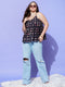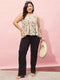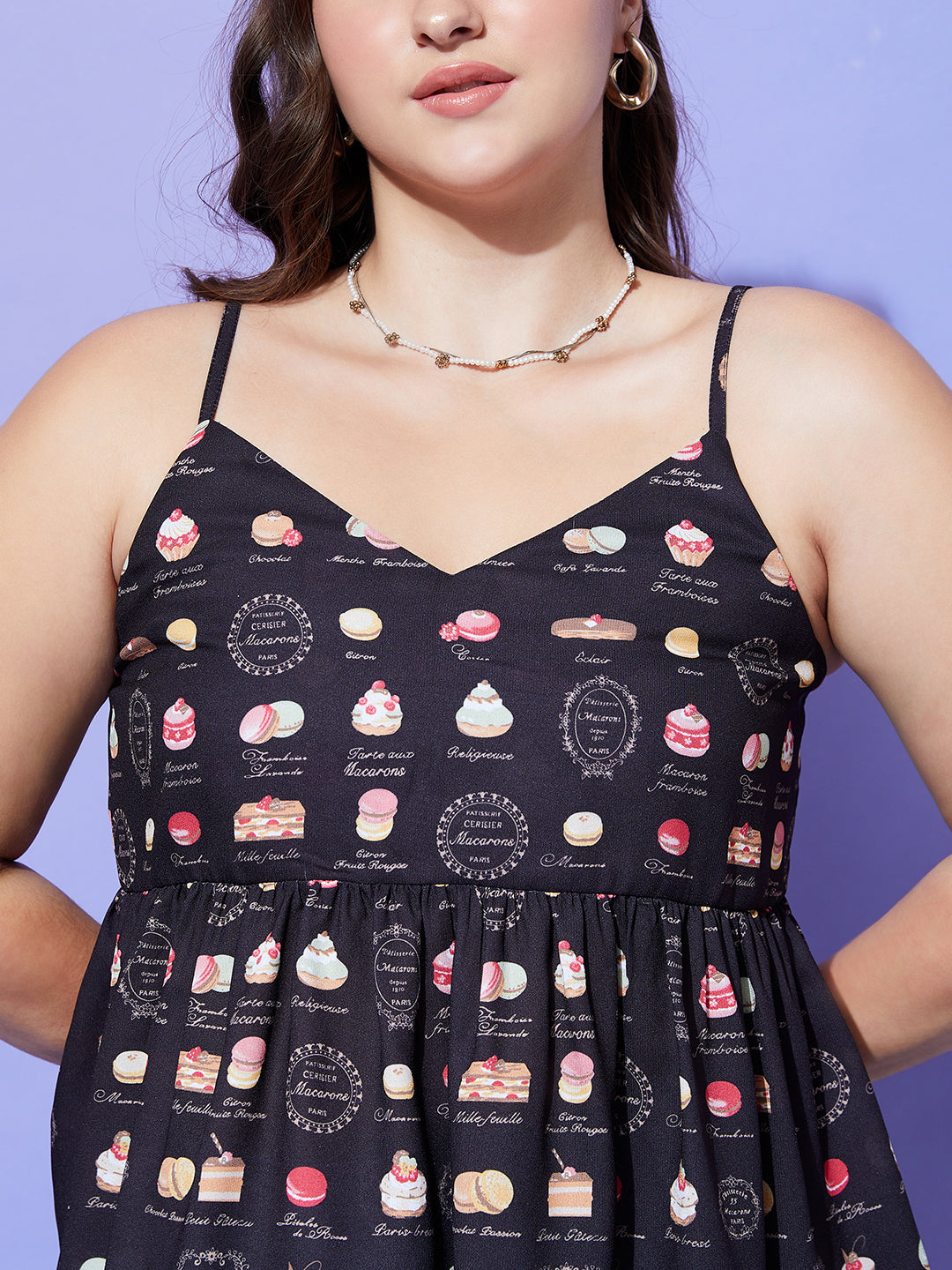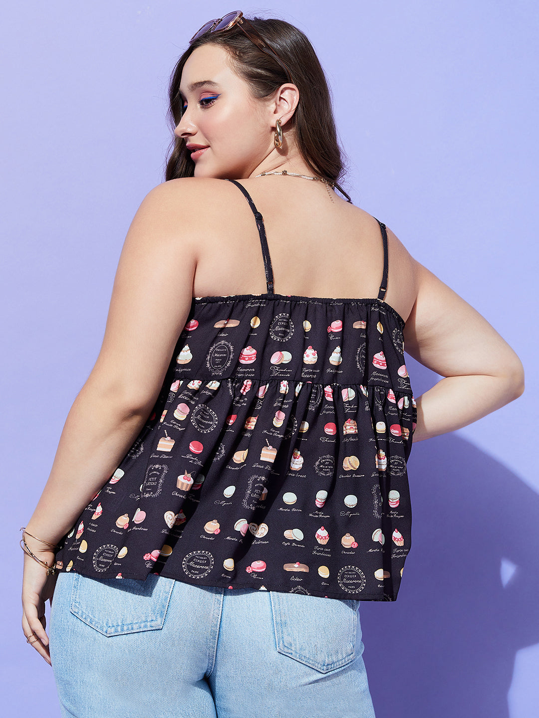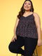 Berrylush Women Plus Size Black Muffin Printed V-Neck Sleeveless Crepe Pleated Empire Top