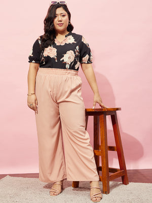 Berrylush Women Plus Size Solid Pink High-Rise Elastic Waist Slip-On Regular Trousers