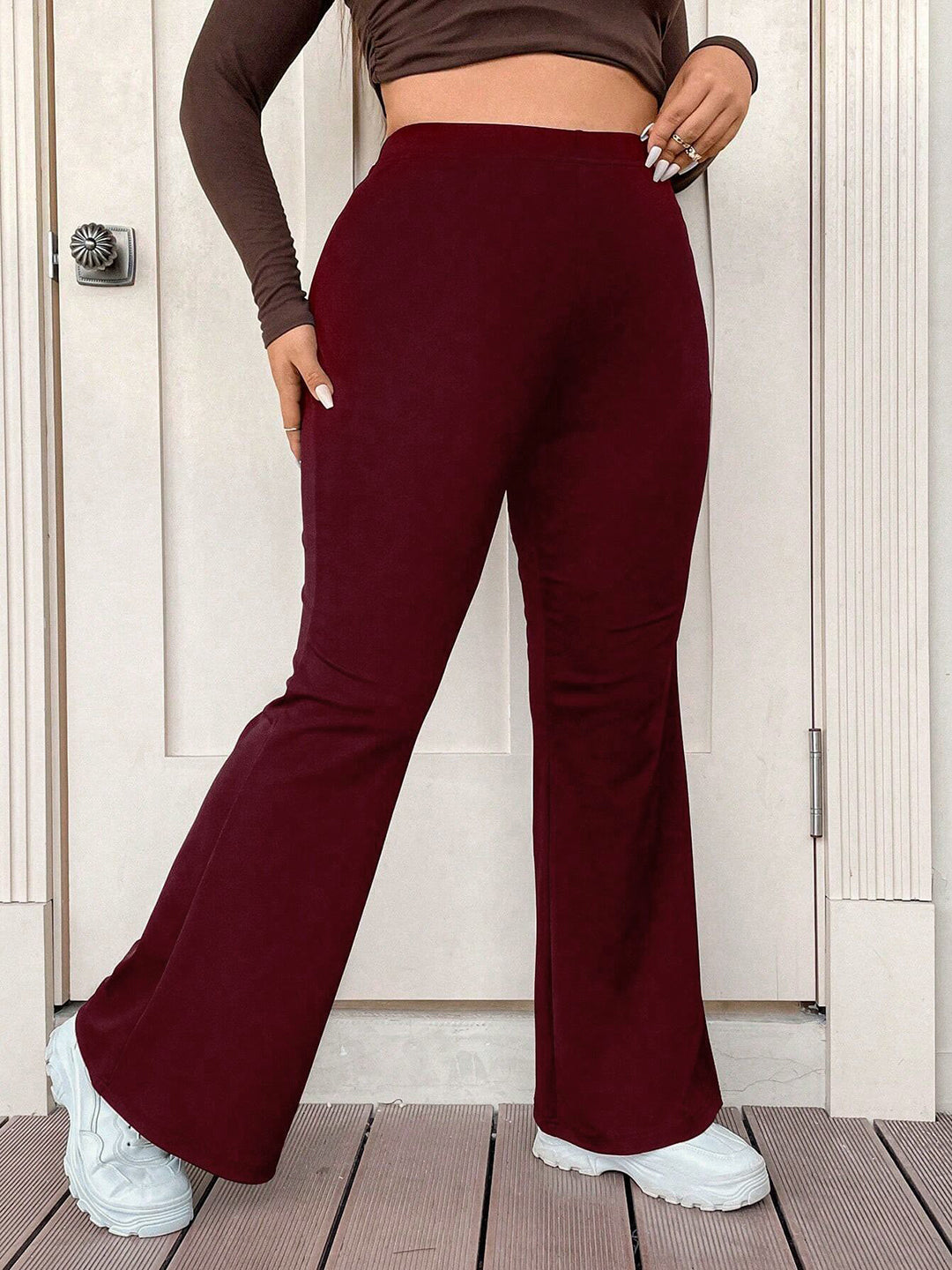 Berrylush Curve Women Red Solid High Rise Knitted Regular Trouser
