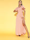 • Thigh-high slit design adjoins a garnishing sheen to this dress