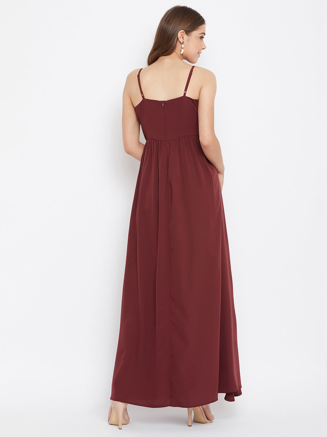 - The solid maroon colour makes this dress a perfect partywear