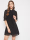 Berrylush Women Solid Red Tie-Up Neck Puff Sleeves Semi-Sheer Fit & Flare Mini Dress