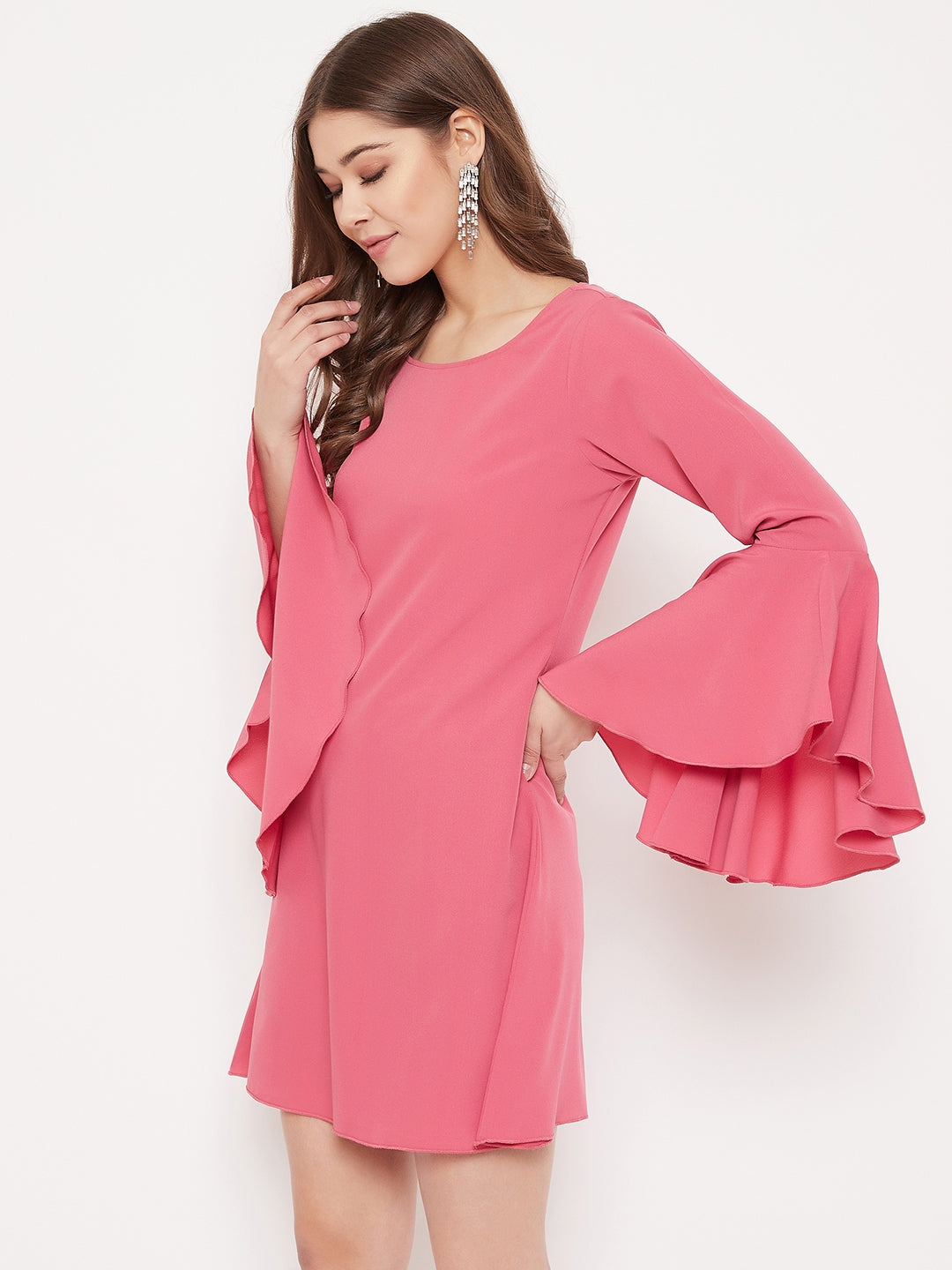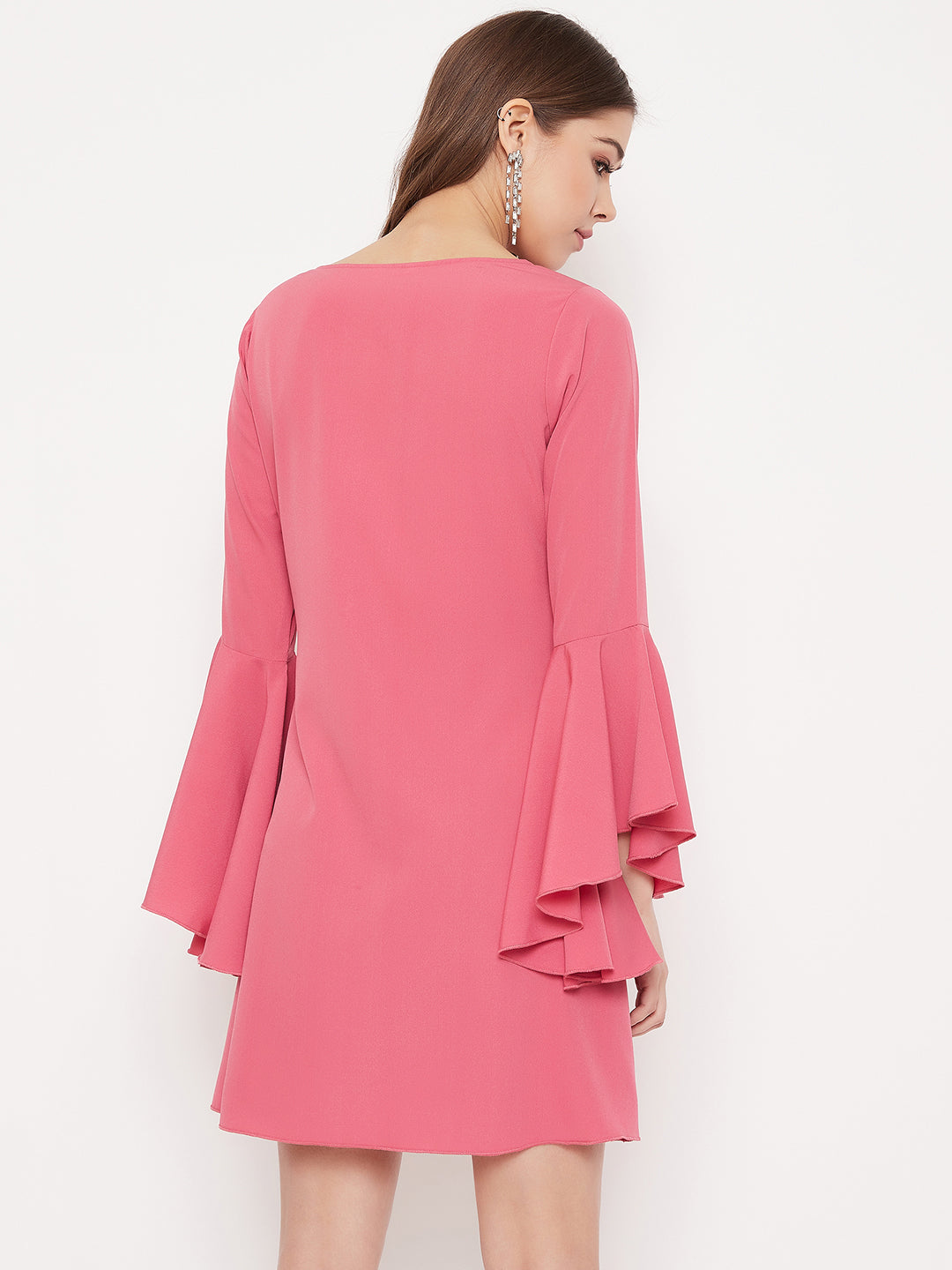 Berrylush Women Solid Pink Flared Sleeves A-Line Mini Dress