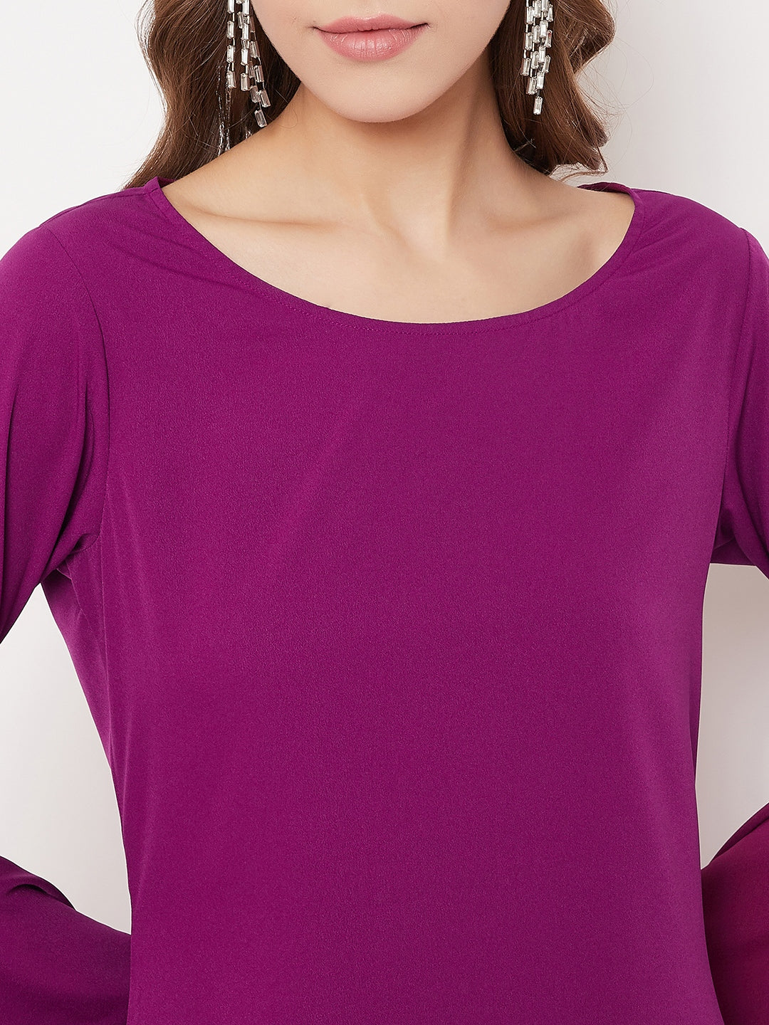This Solid Purple Bell Sleeves A-Line Mini Dress from Berrylush resembles a royal vibe that is very much appropriate for the casual makeover. The playful flared design of the bell sleeves is the ultimate style-enhancing element that makes this dress charming casual wear. To balance the entire look, this dress is designed with a solid purple colour to help maintain its saturation by not making the entire dress decorative. With an A-line skirt and a round neckline to fill your entire outfit with unmatched perfection. The woven weave of the crepe polyester fabric helps keep you comfortable all day long. Style this amazing dress with high heels and a sling bag to get a complete look.