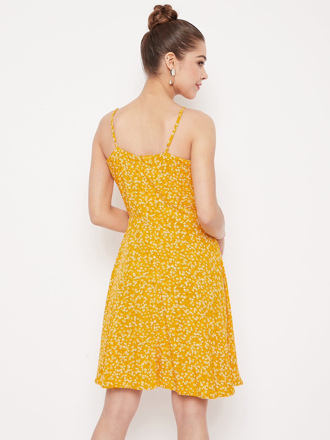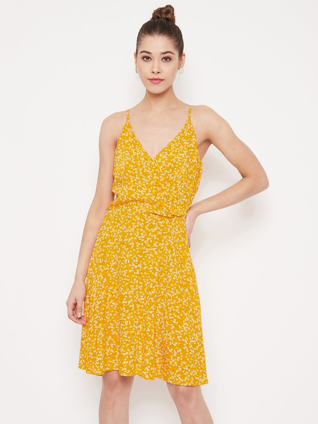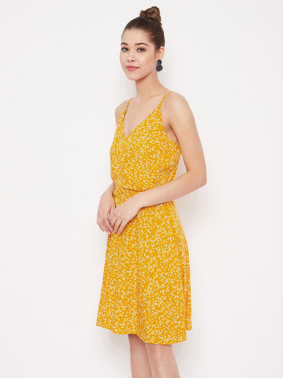 Breathe in the enchanting sparkling fire of the yellow shade present in this Yellow & White Floral Printed V-Neck Fit & Flare Mini Dress from Berrylush. Wherever you walk through spread the bubbly yellow essence of the springtime. With the bold strappy shoulders and V-shaped neckline, this dress flaunts your neck area and gives you an attractive look. Embrace the spring casual look that comes with a figure-flaunting flare. The magnetizing and all-over white-coloured floral print actually steals the show. Match this amazing mini dress with a hat and a pair of stilettos to complete your gorgeous appearance. Wear the summer season's most demanded day wear from Berrylush.