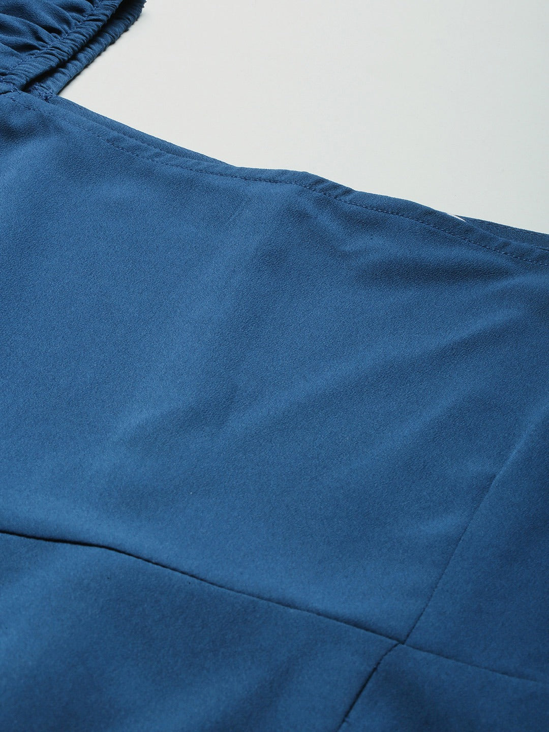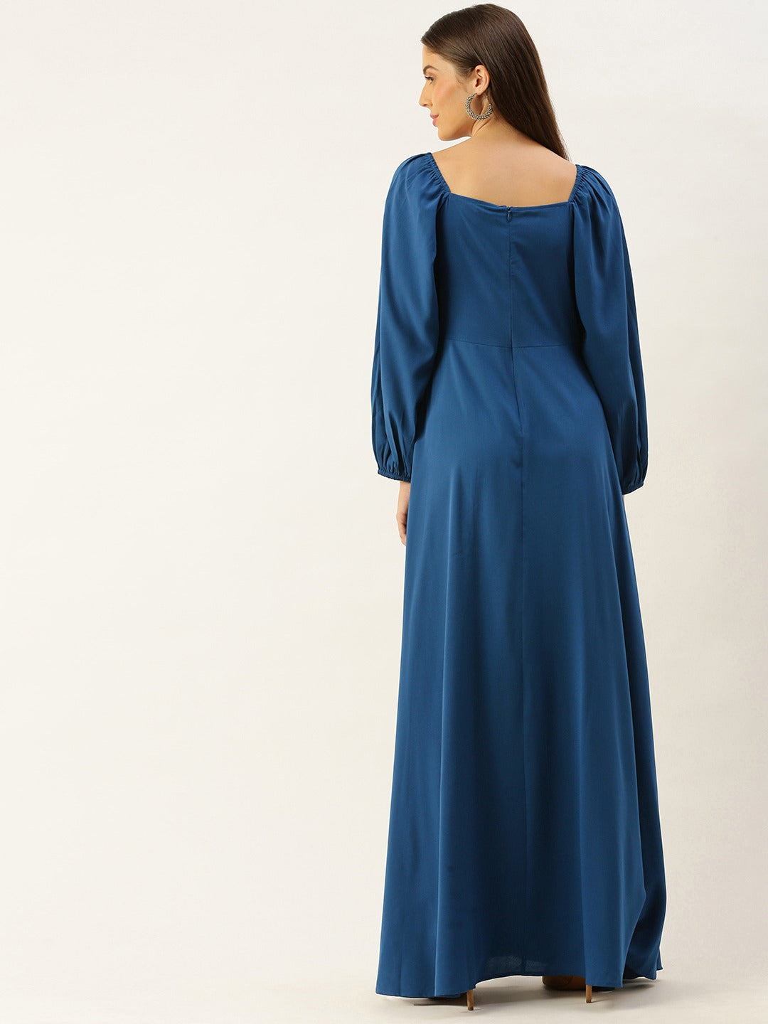 Berrylush Women Solid Blue Square Neck Slim-Fit Maxi Dress