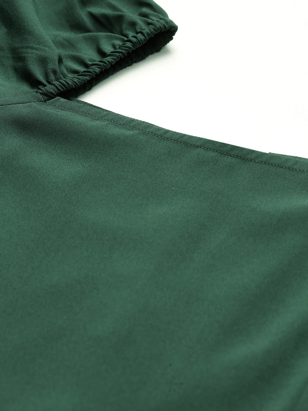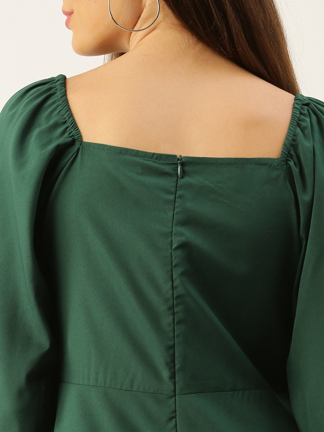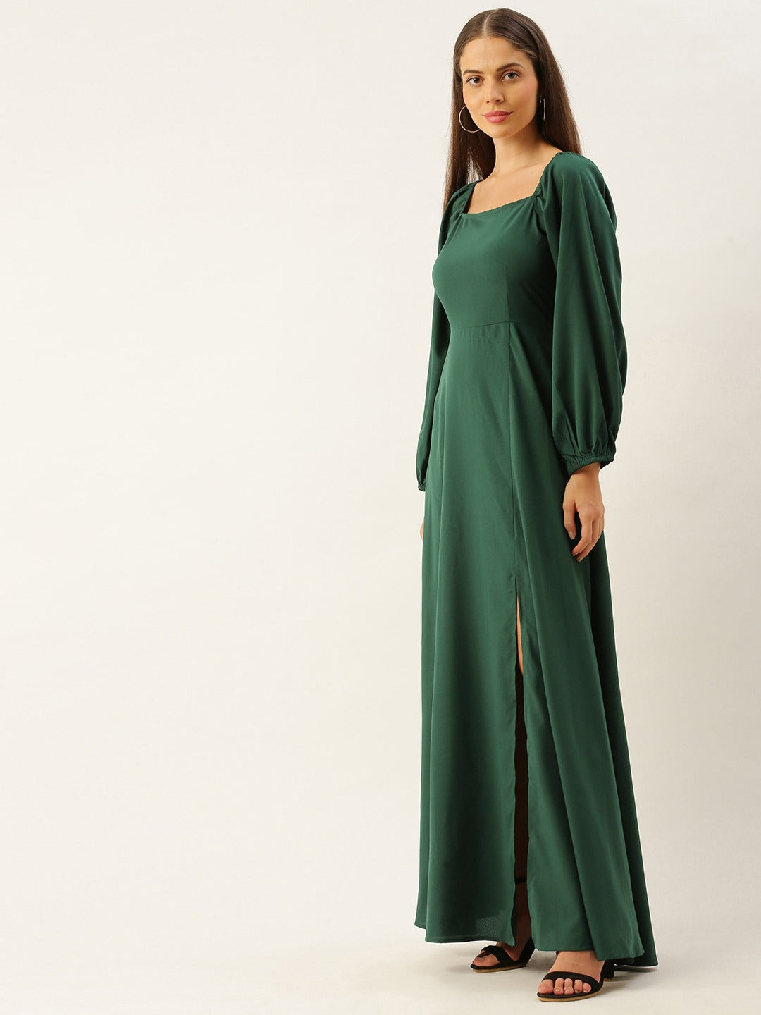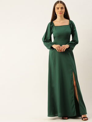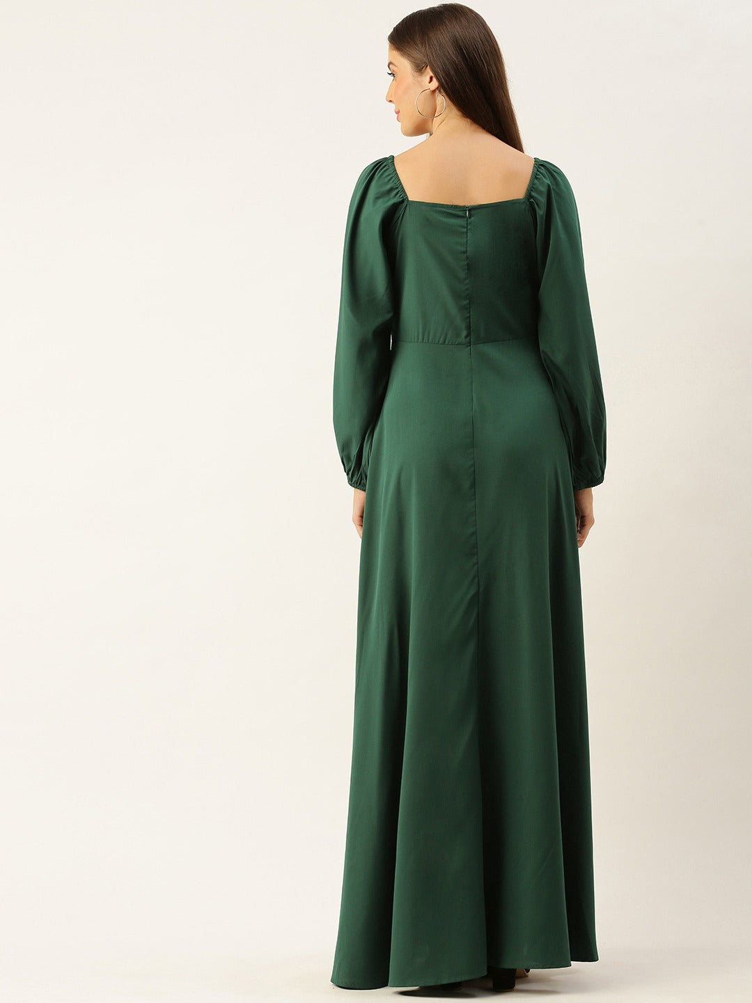 Berrylush Women Solid Green Square Neck Slim-Fit Maxi Dress