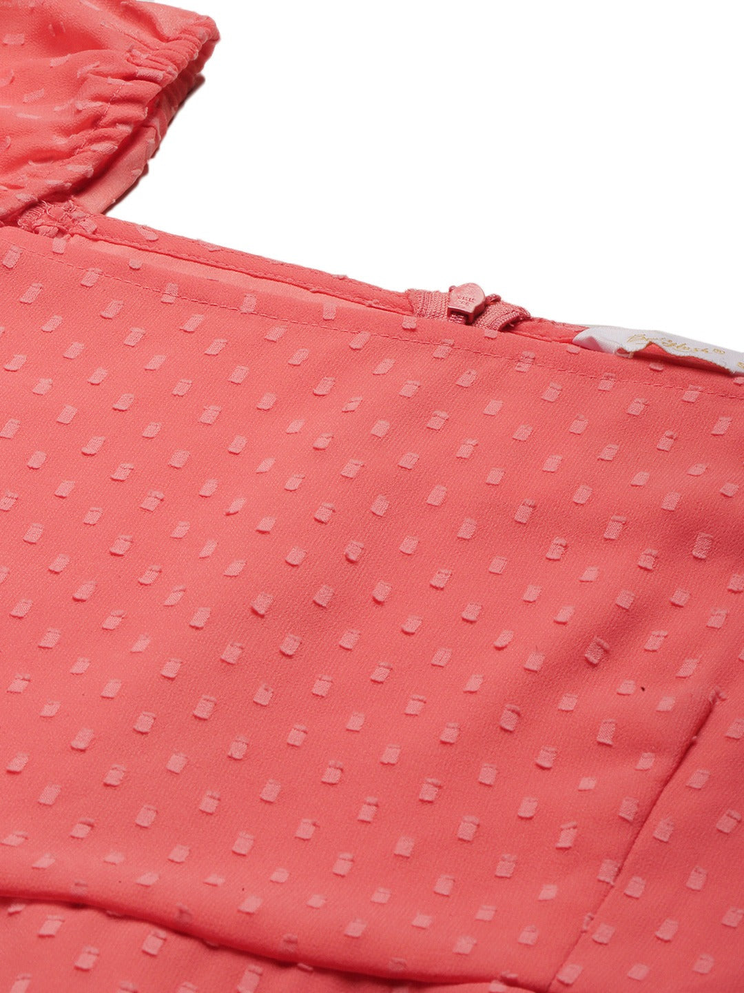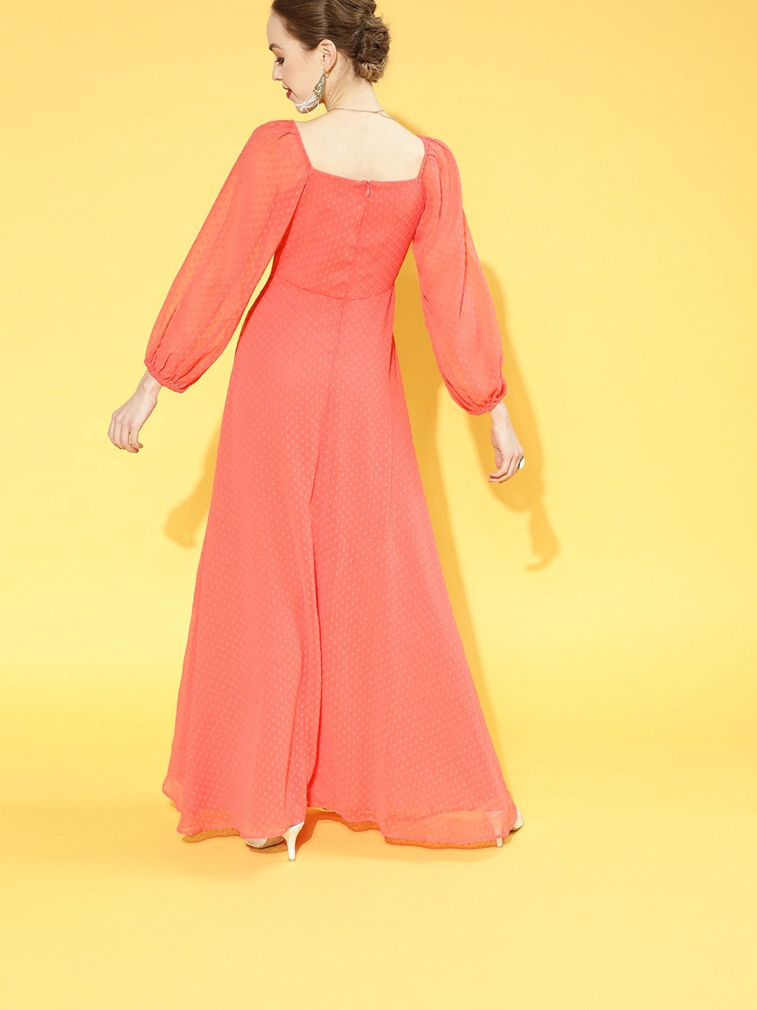 Berrylush Women Pink Dotted Square Neck Maxi Dress