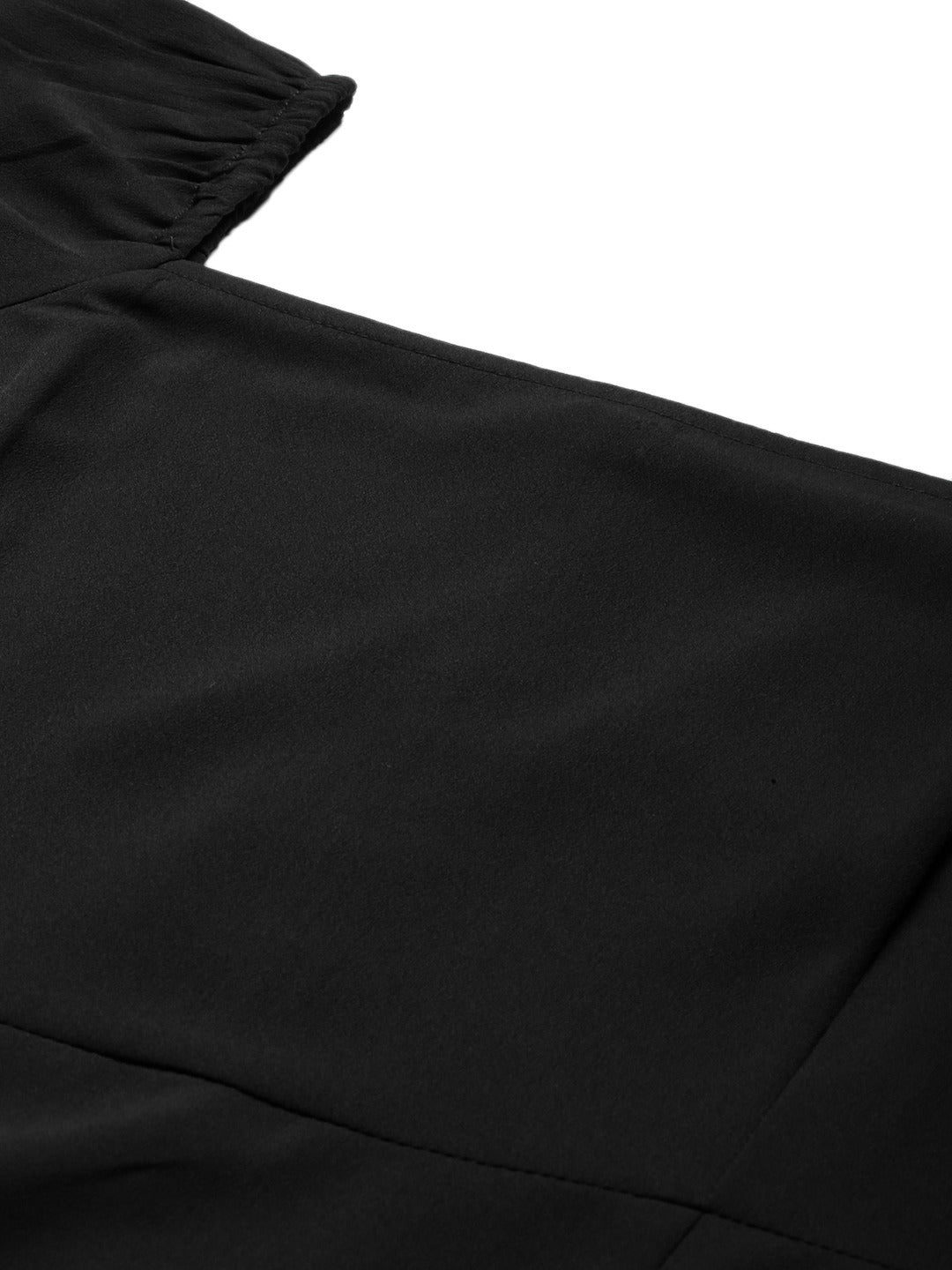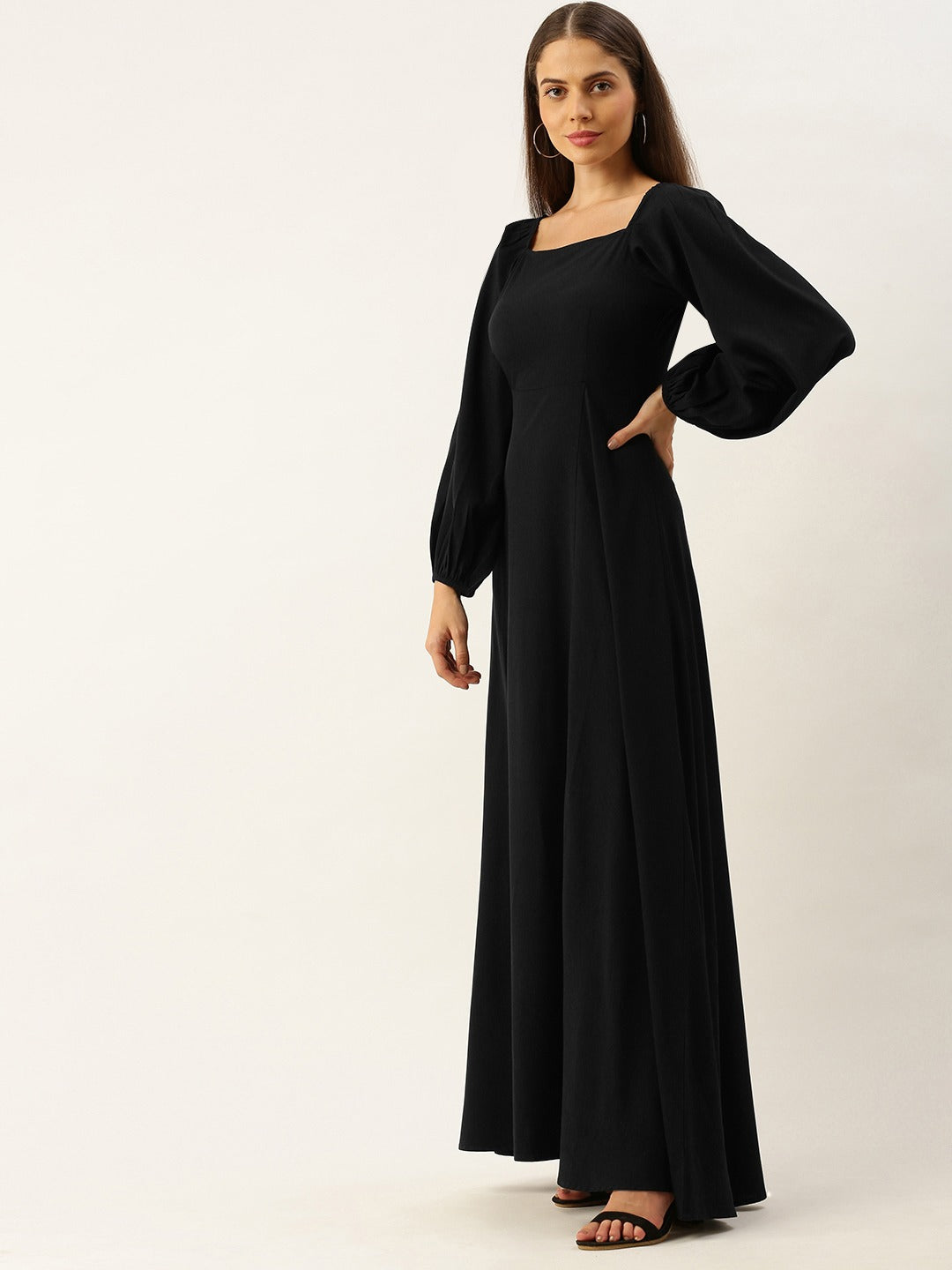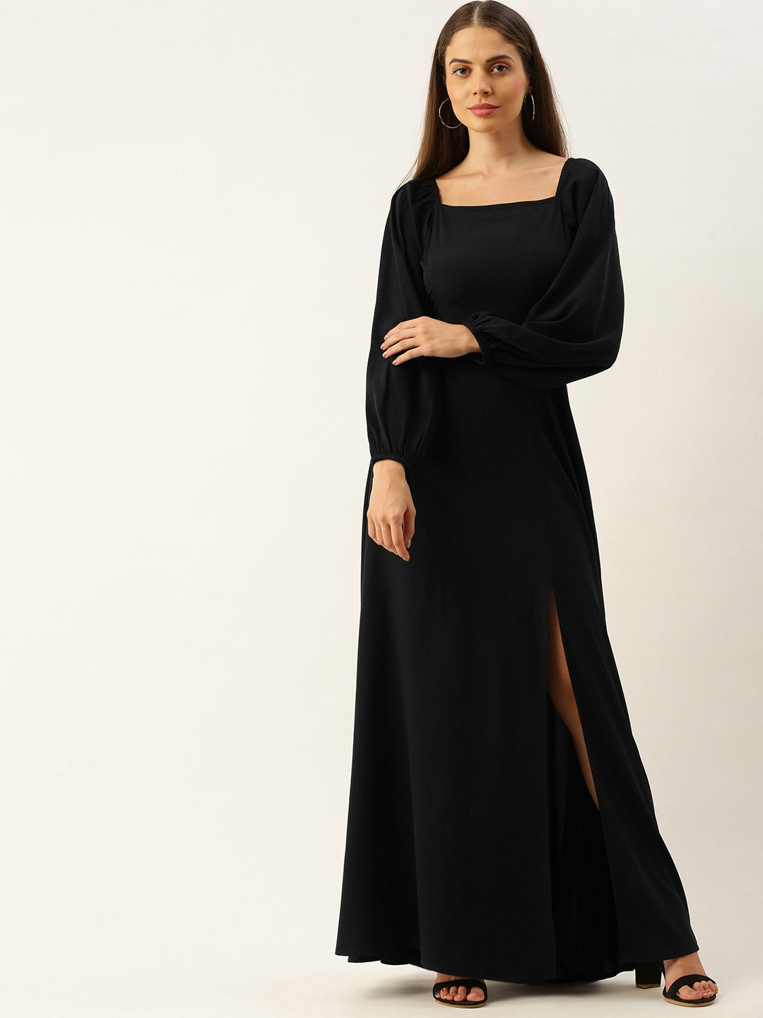 Berrylush Women Solid Black Square Neck High Slit Maxi Dress