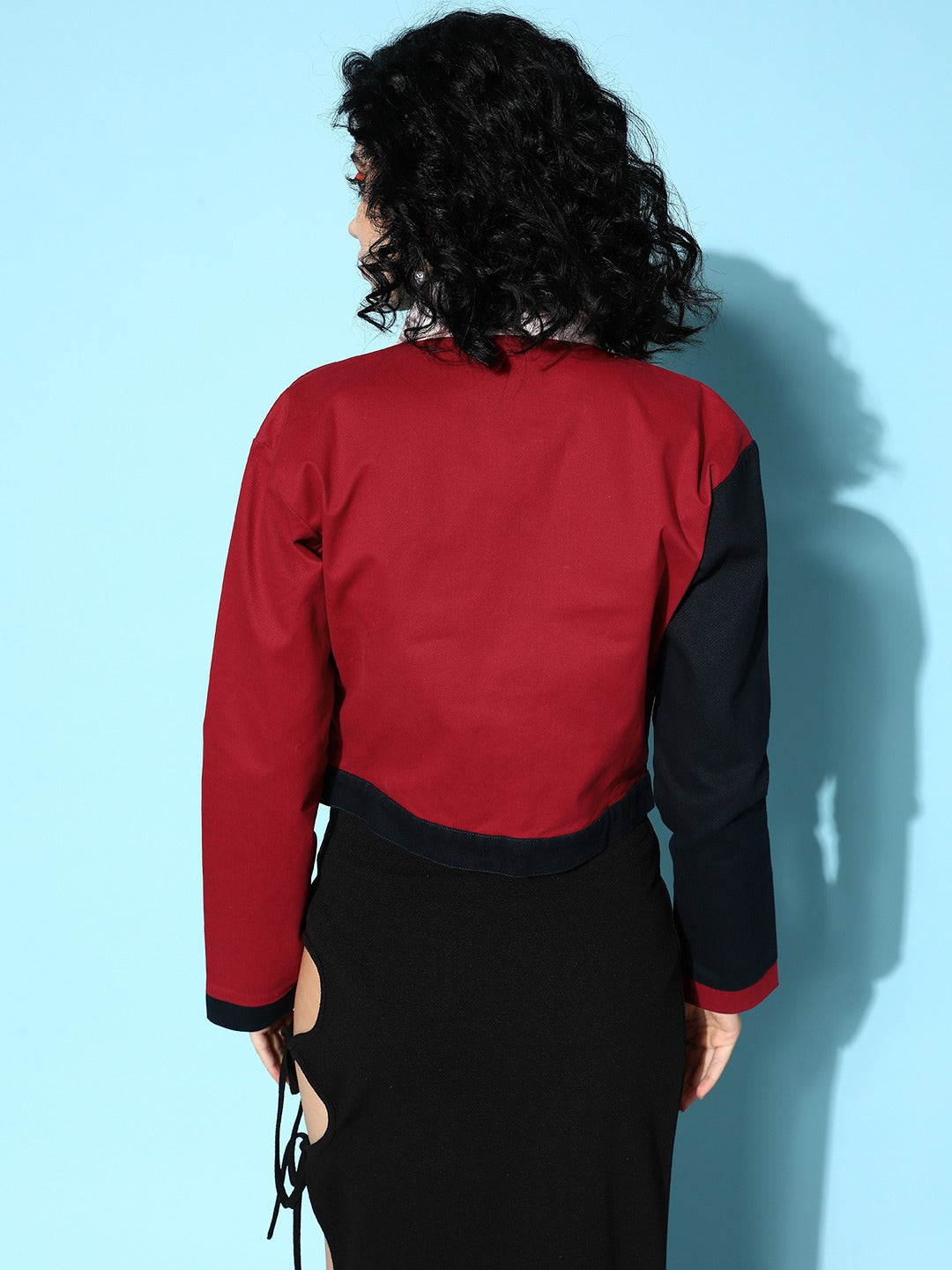 Slay with magical monochrome ensembles that never go out of style just like this ravishing Colourblocked Red, White, & Black Spread Collar Tailored Crop Jacket from Berrylush. Fashioned with a spread collar design that gives this jacket a semi-formal appearance with a sophisticated definition to your neckline. Adorned with a tailored style that lends this jacket sartorial perfection with a tinge of a special fashion statement. Also, this jacket is light in weight along with limitless breathability as it is made with unlined fabric. Get a gorgeous look for your next outing with your friends by wearing this jacket over a white crop top, a black skirt, high heels, and a matching side bag.