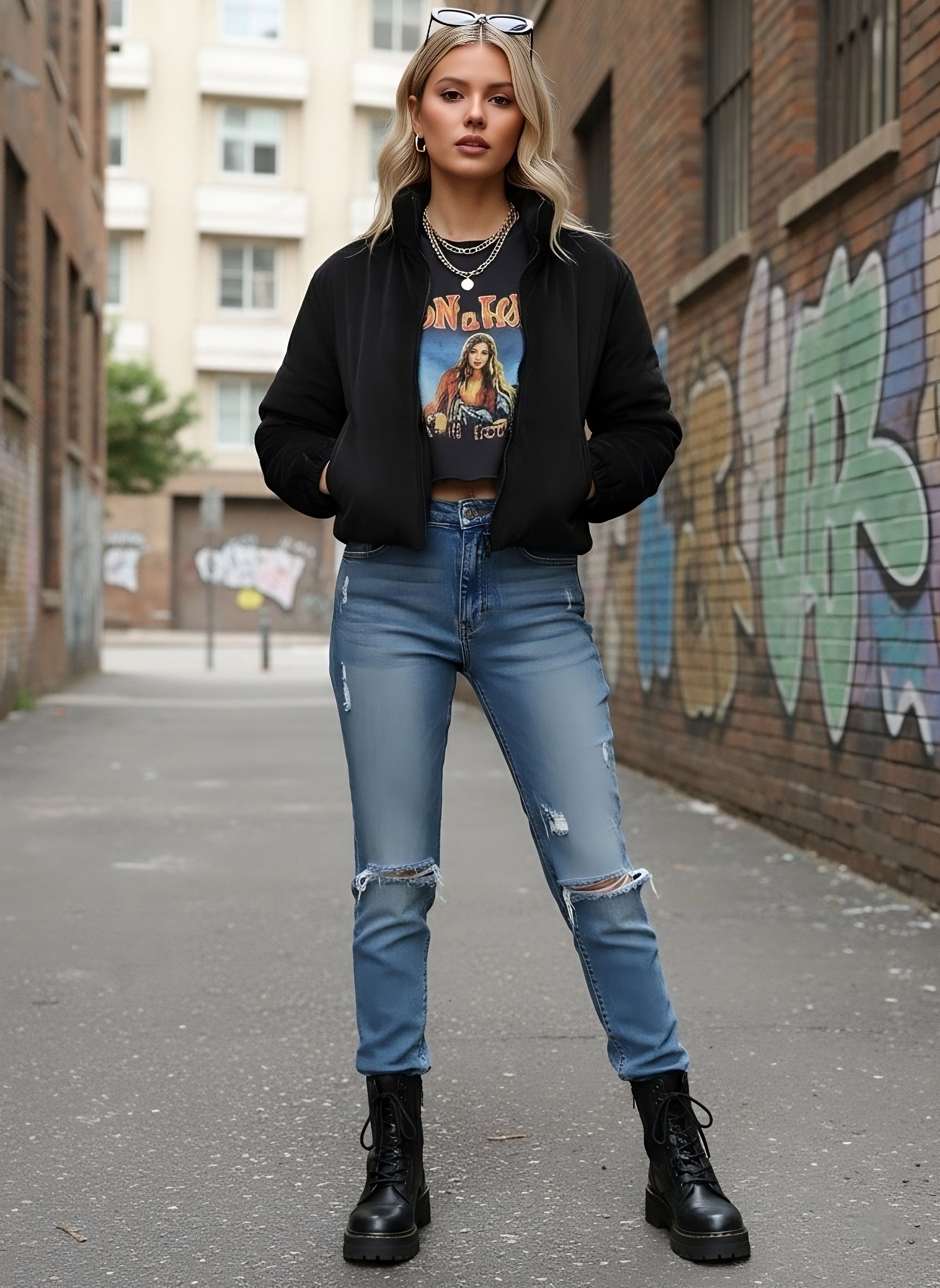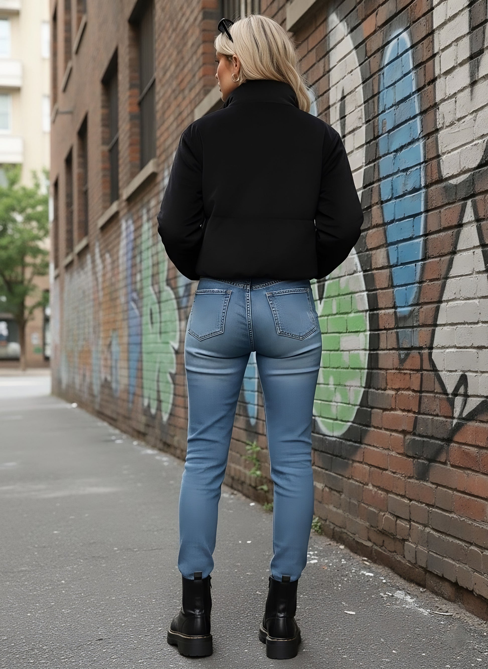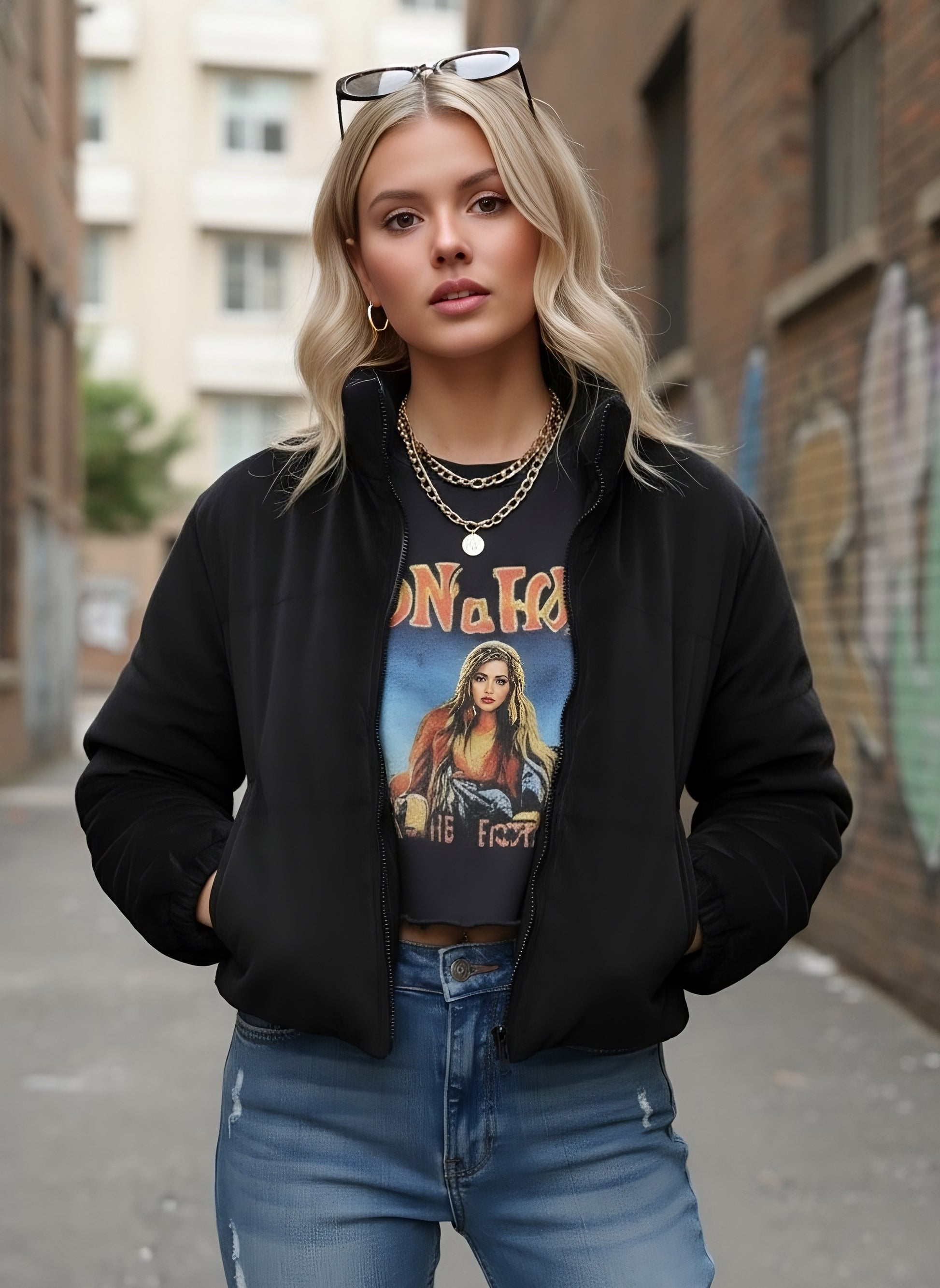 Searching for the perfect go-to layer that keeps you stylish and cosy this winter season, then the most suitable option for you is this charming Solid Black Stand Collar Tailored Regular Jacket designed by Berrylush. Styled with a stand collar neckline that offers a high-neck finish while keeping your neck warm for a prolonged duration. Featuring long-regular sleeves that give your arms maximum comfort and protection from cold winds. The zip closure makes this jacket easy to pull on and off without taking much time along with a clean sheen. Step out of your house looking fashion-focused by wearing this jacket over a white crop, high-waist jeans, ankle-length boots, diamond earrings, and a waist bag.