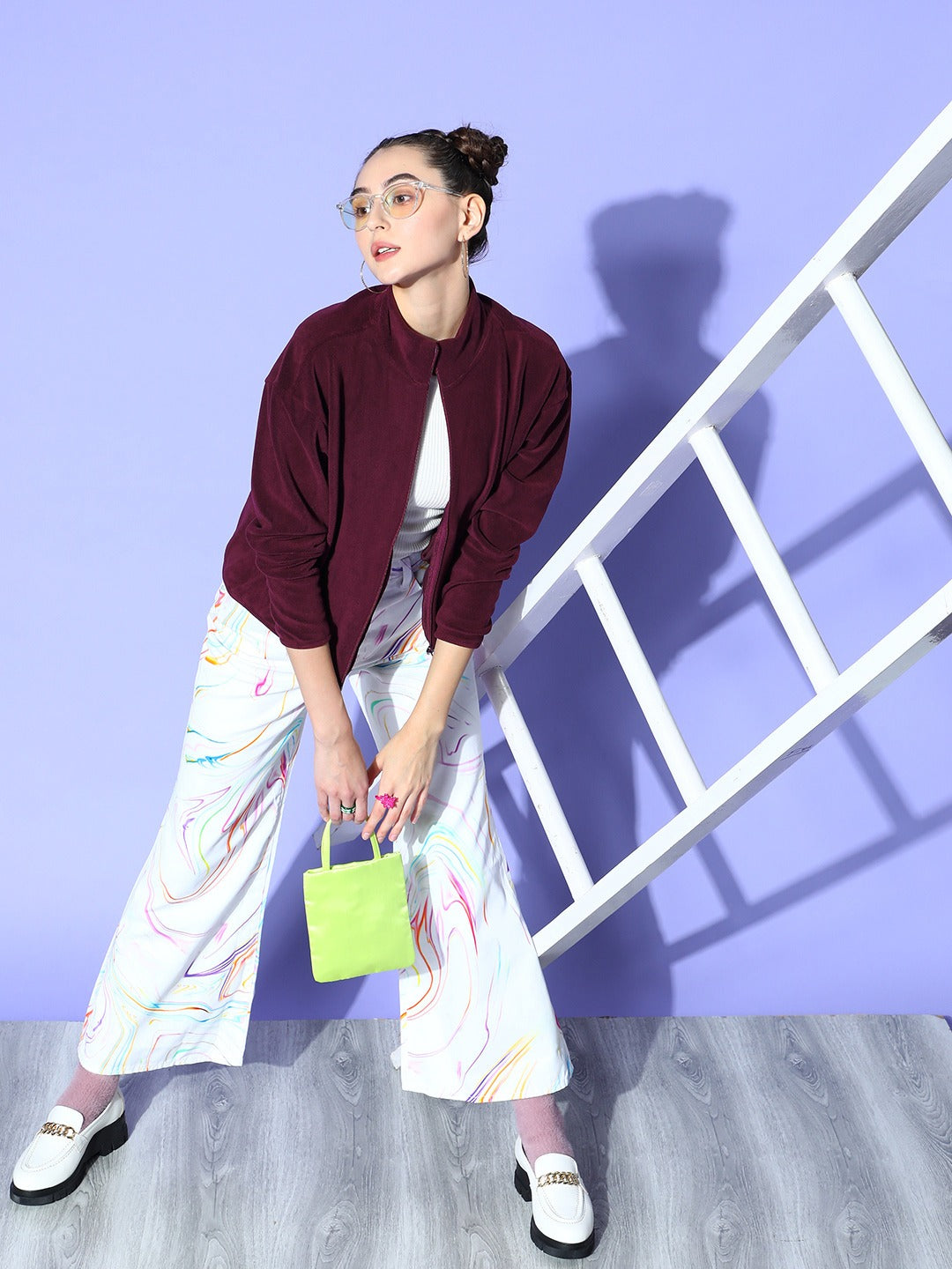 Let others be inspired by your astonishing street fashion game with this beautiful Burgundy Solid Open Front Jacket from the premium winter collection of Berrylush. Adorned with a classic combination of burgundy shade in a solid pattern that reflects your innovative persona with a hint of an imperial vibe. Flaunting open-front style that enables you to style this jacket in various ways as per your fashion preference. Spun from the finest polyester material to lend this jacket a quick drying feature with amazing durability. Complete your casual outing look by wearing this open-front jacket over a crop top, contrasting parallel pants, cool sneakers, fun hoop earrings, and a sassy side bag.