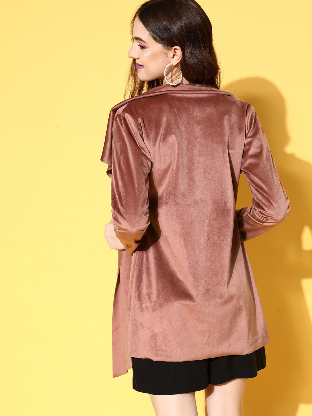 Join the glam squad with a style quotient that is impossible not to notice by donning this bedazzling Brown Solid Wrap Coat with a Belt from the latest winter collection of Berrylush. The most astonishing fashion factor of this coat is the amazing mixture of classy brown shade and solid pattern that lends you an aesthetic casual look followed by a sassy vibe. Comes with a fabric belt that offers a figure-flattering and convenient silhouette to lend this a customized fit. However, the hip length presents a distinctive yet sophisticated styling element of this coat. You can gracefully layer up this wrap coat over a black bodycon mini dress with a pair of brown knee-length boots, minimalistic diamond jewellery, and a matching side to get a fashion-focused look for your date night.