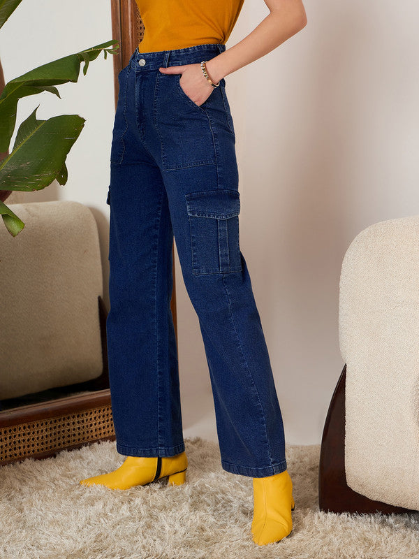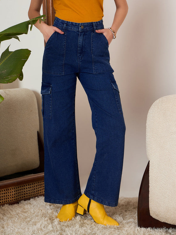 Introducing the Berrylush Solid Blue High-Rise Waist Cotton Knitted Regular Jeans, an embodiment of casual elegance and comfort. Crafted with the finest knitted cotton fabric, these jeans feature a sleek straight-fit design tailored for effortless style. The high-rise waist accentuates your silhouette while providing utmost comfort thanks to its medium-shade opaque material. Designed for daily wear with six practical pockets, belt loops, and a secure button-and-zipper closure, these jeans ensure functionality and meet fashion flawlessly whether it's a laid-back day out or a relaxed evening in town—an absolute must-have addition to your wardrobe!