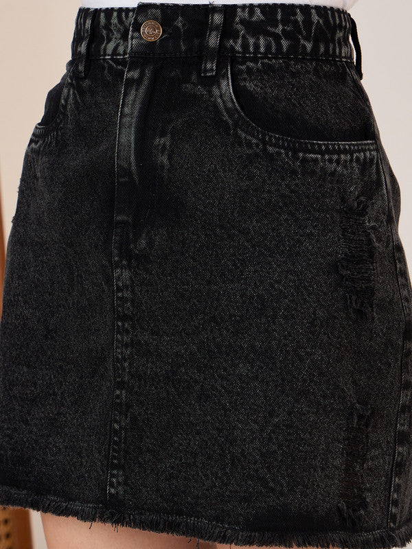 Elevate your wardrobe with the Berrylush Solid Black Mini Skirt, a flawless blend of style and comfort. Crafted from premium knitted denim, this skirt ensures durability without compromising on chic aesthetics. Featuring a high-rise waist that flatters your silhouette, it comes equipped with two pockets for convenience while maintaining its sleek design. The solid black hue allows versatile styling options; perfect for any casual occasion. Its straight hemline adds a modern twist to the classic A-line cut ensuring you look effortlessly stylish every time you step out - secured by both button and zipper closures for perfect fit and crafted to be fully opaque.