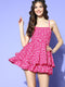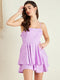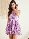 Berrylush Women Green & White Floral Printed Square Neck Back Tie-Up Layered Mini Playsuit