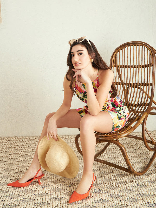 Step into a playful vibe with Berrylush’s Pink & Multicolour Abstract Printed Smocked Mini Playsuit. This sleeveless mini playsuit is perfect for casual outings, featuring a vibrant abstract pattern that instantly captures attention. Designed with comfort and style in mind, it boasts a smocked surface styling and an alluring square neckline that complements its woven polyester fabric beautifully. The back tie-up closure adds a charming detail while ensuring a perfect fit. Embrace the ease of opaqueness and enjoy your day in this eye-catching ensemble!