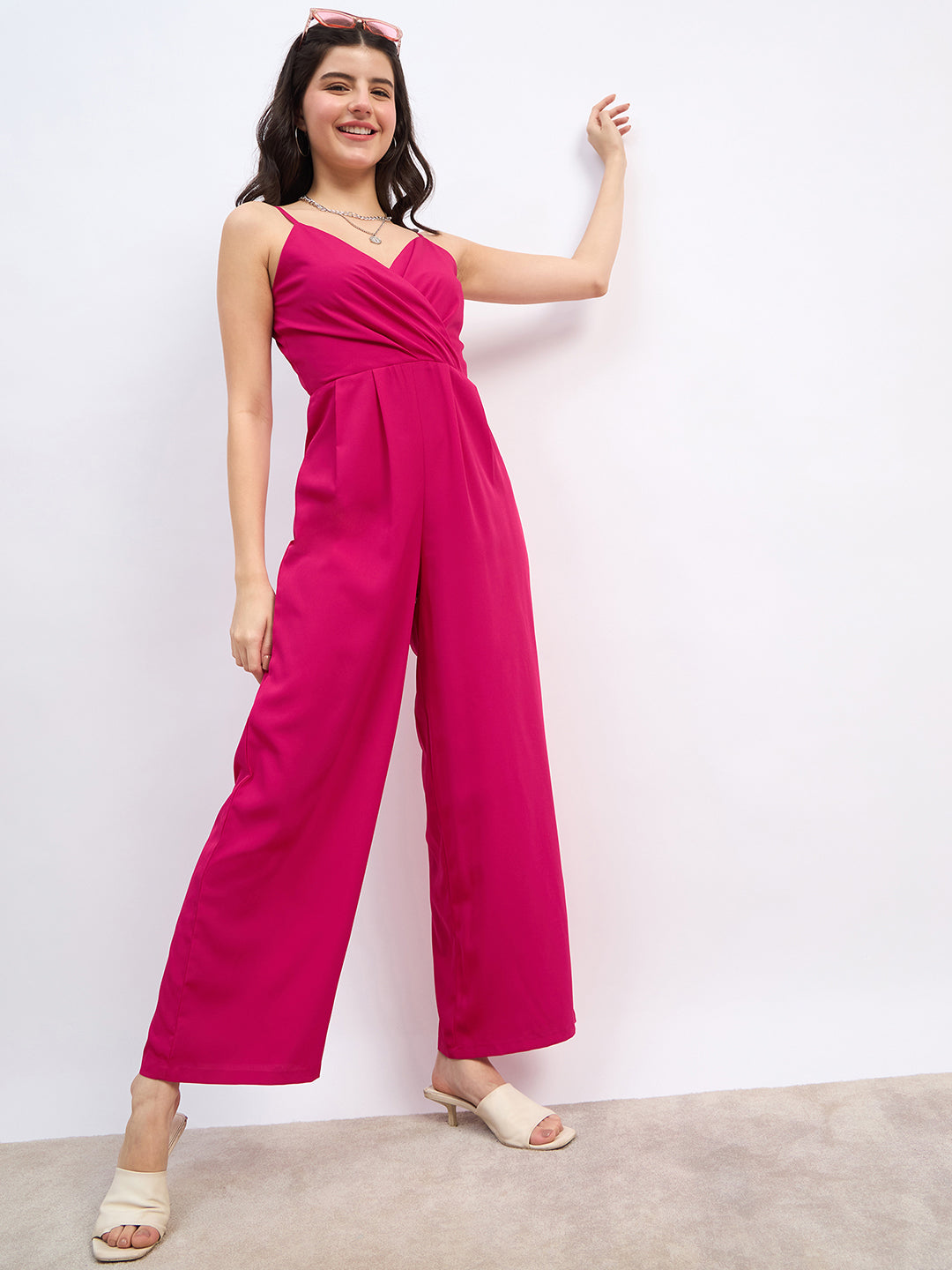 • Pink shade and solid pattern give this jumpsuit a glamorous and chic vibe