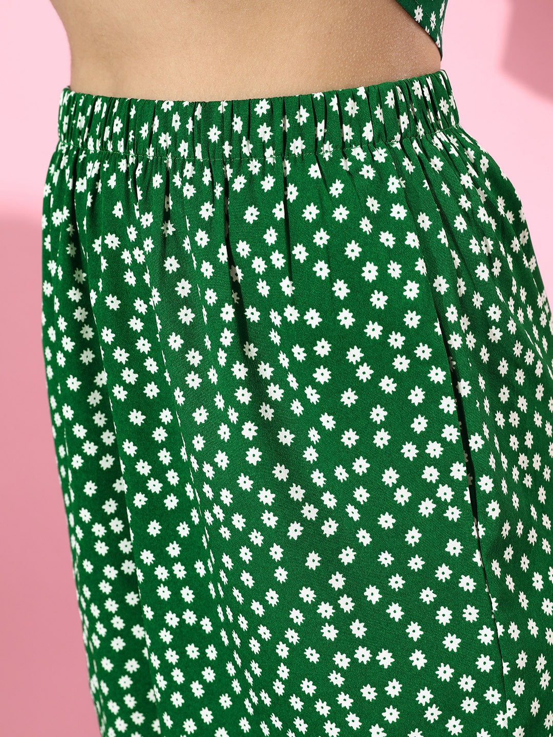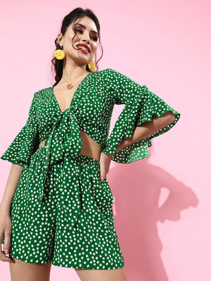 Berrylush Women Green Polka Dot Printed V-Neck Tie-Up Jumpsuit