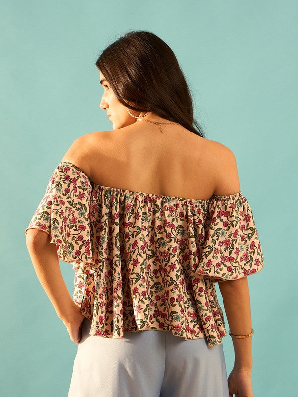 Introducing the Berrylush Pink & Green Floral Bardot Top—a perfect blend of charm and trendy style. This off-shoulder neckline, coupled with flared short sleeves, adds a whimsical touch to your look. Featuring a vibrant floral print set against a soothing pink and green backdrop, this top ensures you stand out in every gathering. Crafted from high-quality polyester with pleated surface styling for added texture, it offers both comfort and durability in a chic package. Whether it's brunch or an afternoon outing, make each moment special with this gorgeous regular-length bardot top ideal for any casual occasion.