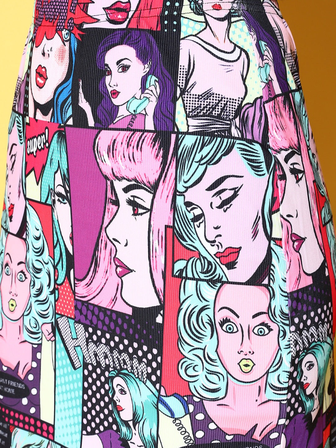 Berrylush Women Multicolour Pop Printed Slip-On Straight Hem Slitted Pencil Mini Skirt