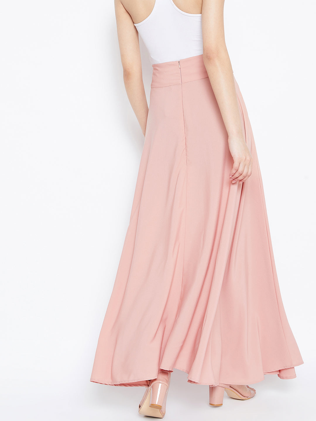Define the beauty of your party style with this Solid Pink Waist Tie-Up Flared Maxi Skirt from Berrylush. A pastel pink shade with a default supple element percolate into this outfit and provides all-day comfort with this apparel. The smooth texture of the polyester fabric undoubtedly sustains the relaxing style statement for long hours. Fascinating waistband with bow tie knot depicts this maxi skirt as the best modish wear option. The flared hemline perfectly handles your bouncy tale of style & glamour. Pair this amazing skirt with heeled stilettos, an embellished sling bag, and metallic jewellery for a gorgeous look. Give your party wear a chic charm with the style check of Berrylush.