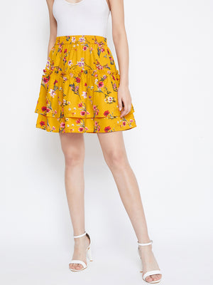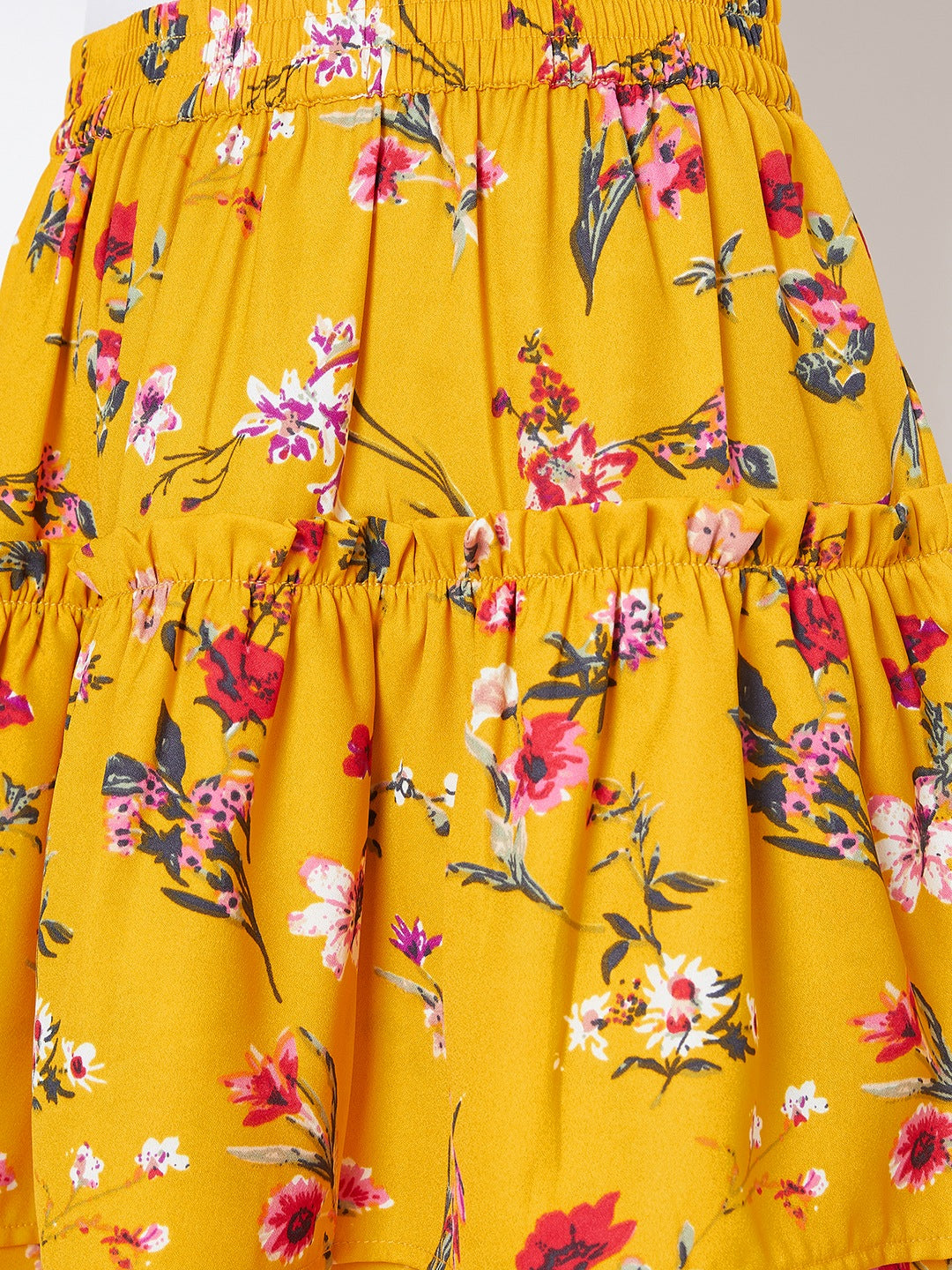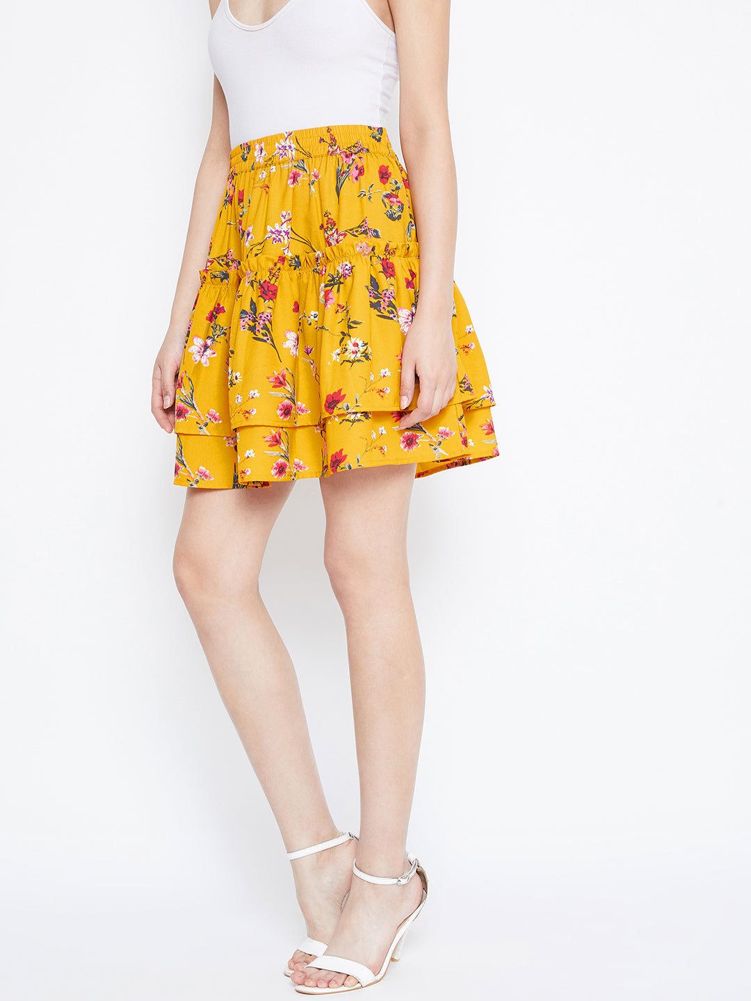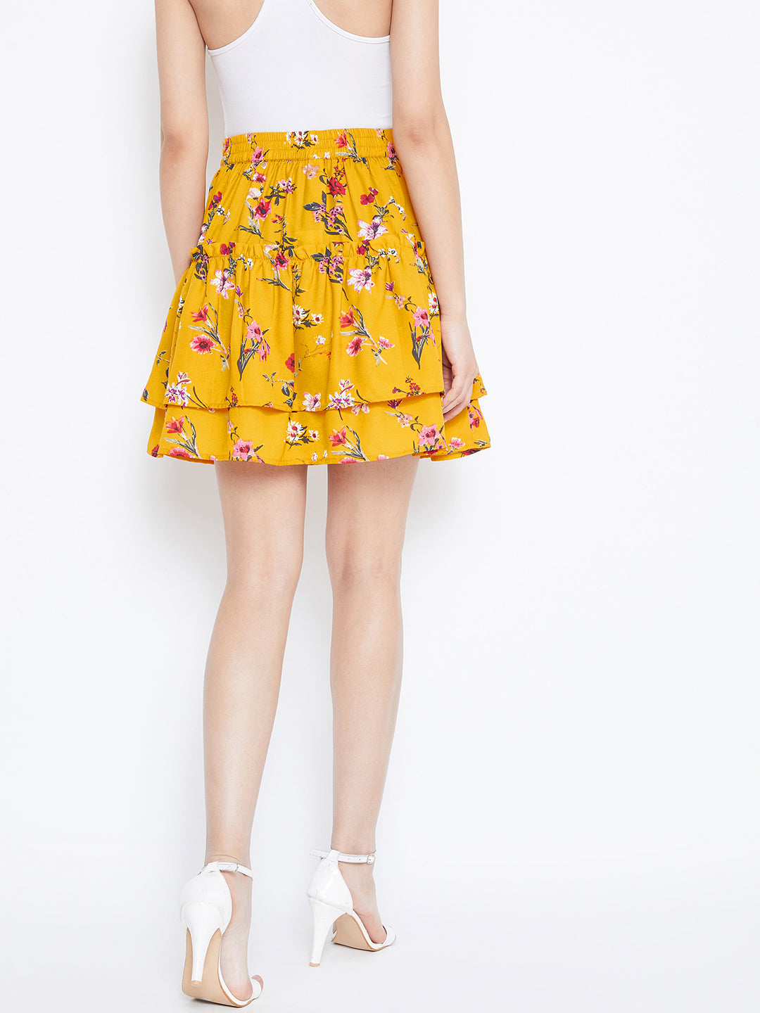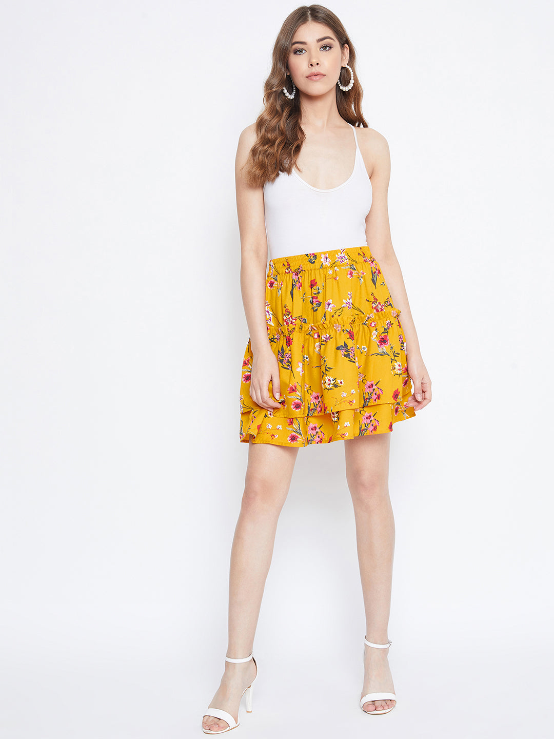 Berrylush Women Yellow Floral Print Layered Slip-On Mini Skirt