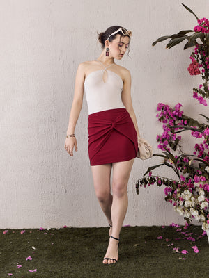 Berrylush Women Solid Red High-Rise Waist Slip-On Straight Hem Twisted Mini Skirt