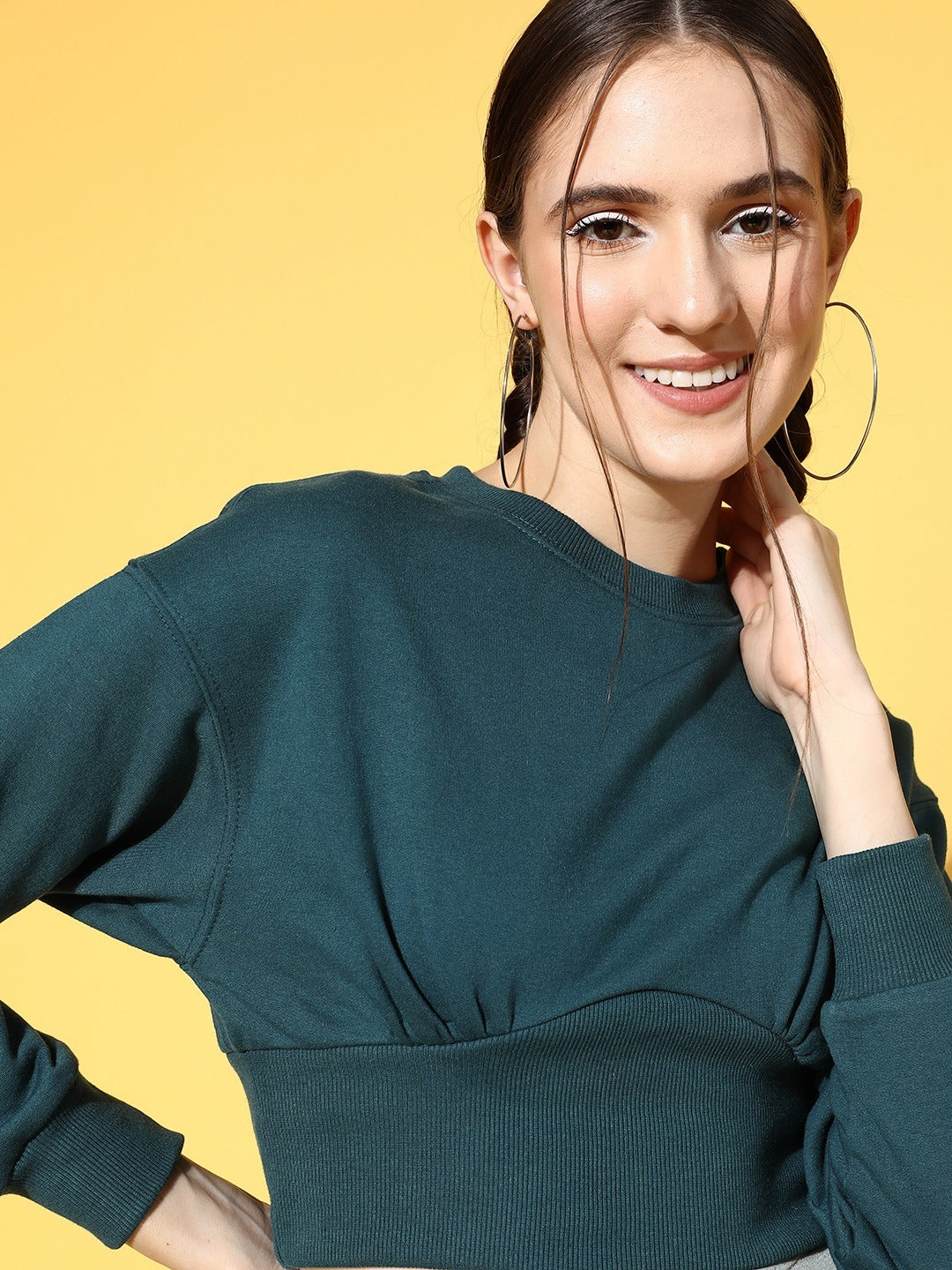 Be a style changer this autumn season by keeping it simple, elegant, and warm but with a dash of drop-dead glam by investing in this classy Blue Solid Crop Sweatshirt from Berrylush. Presenting a mesmerizing combination of blue shade and solid pattern that lends this sweatshirt versatile and chic fashion essence along with a cinematic vibe. Designed in crop length that makes this sweatshirt is a statement piece for every casual event while keeping your style upgraded with the latest trend. Also, the long-regular sleeves assemble a practical design of this sweatshirt that keeps your arms warm. Wear this cropped sweatshirt over a cute mini skirt, a pair of black knee-length boots, hoop earrings, and a matching side bag to create a bedazzling look.