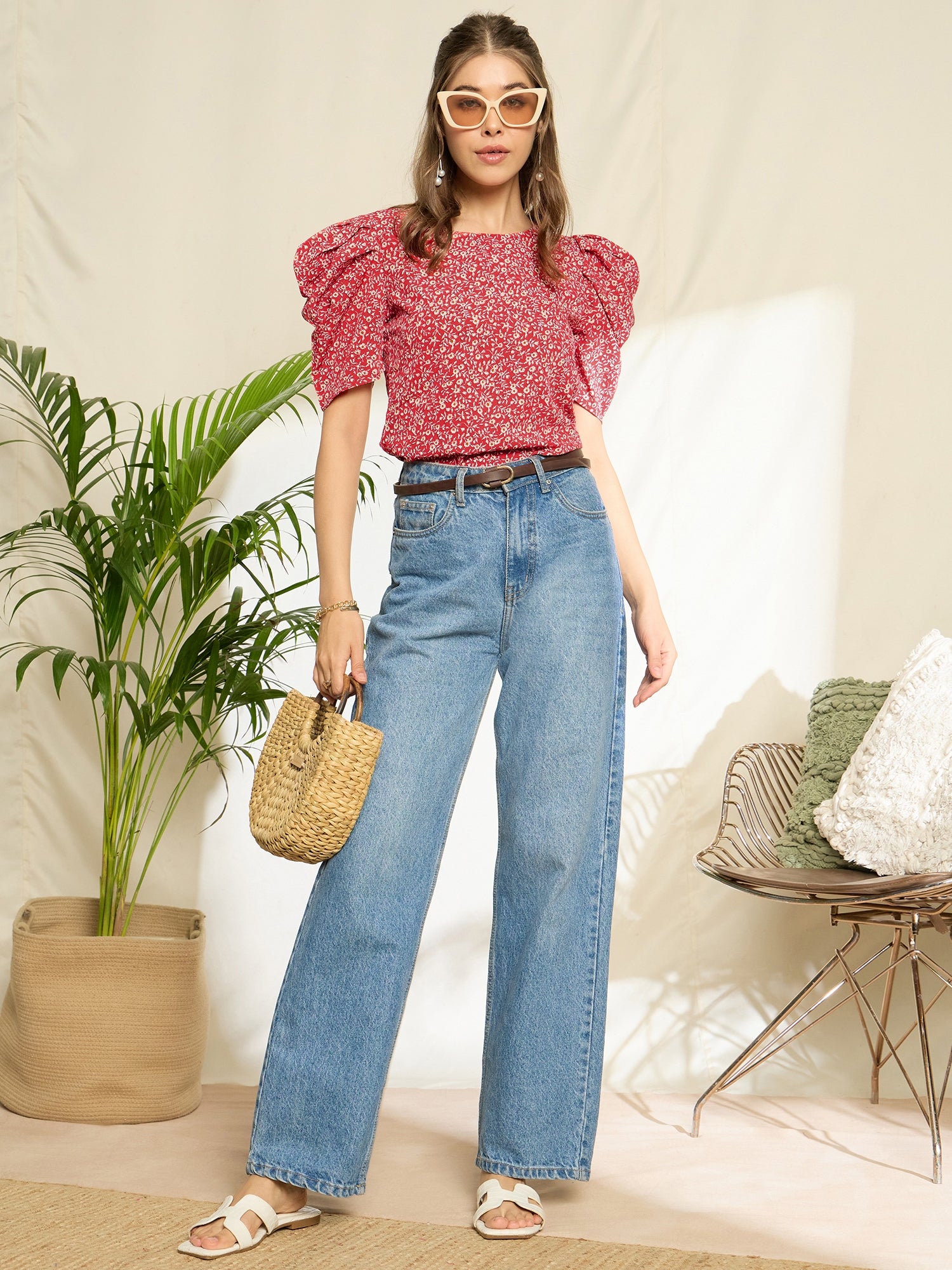 Add flair to your everyday outfits with the stunning Red & White Floral Printed Round Neck Puff Sleeves Top from Berrylush. This enchanting piece is designed to infuse a fresh, feminine touch into any outfit. Crafted from high-quality polyester, it ensures all-day comfort while maintaining a chic look. The vibrant red and white floral print brings life and energy to your ensemble, perfect for brunch dates or strolls in the park. Short puff sleeves add a playful charm that complements the round neckline beautifully. A delicate keyhole detailing at the back showcases an alluring hint of skin without compromising on modesty. With its regular length and opaque fabric weave, this top pairs effortlessly with jeans or skirts for versatile styling options.