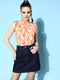 Exudes contemporary style to your summer closet with a tinge of artistic fashion factor by bringing home this charming White and Pink Print Ruffles Crepe Top from Berrylush. Decorated with ruffled surface styling to adjoining frills and eye-catching decorative design to this top. Comes with a sleeveless design to give this top a dash of chicness along with eccentric outshines to your beautiful arms. Also, the woven detailing makes this top durable with a hint of elastic nature and pleasing touches to your skin. Complete your weekend look gorgeously by partnering up this crepe top with a contrasting mini skirt, a pair of pump heels, tassels earrings, and a trendy side bag.