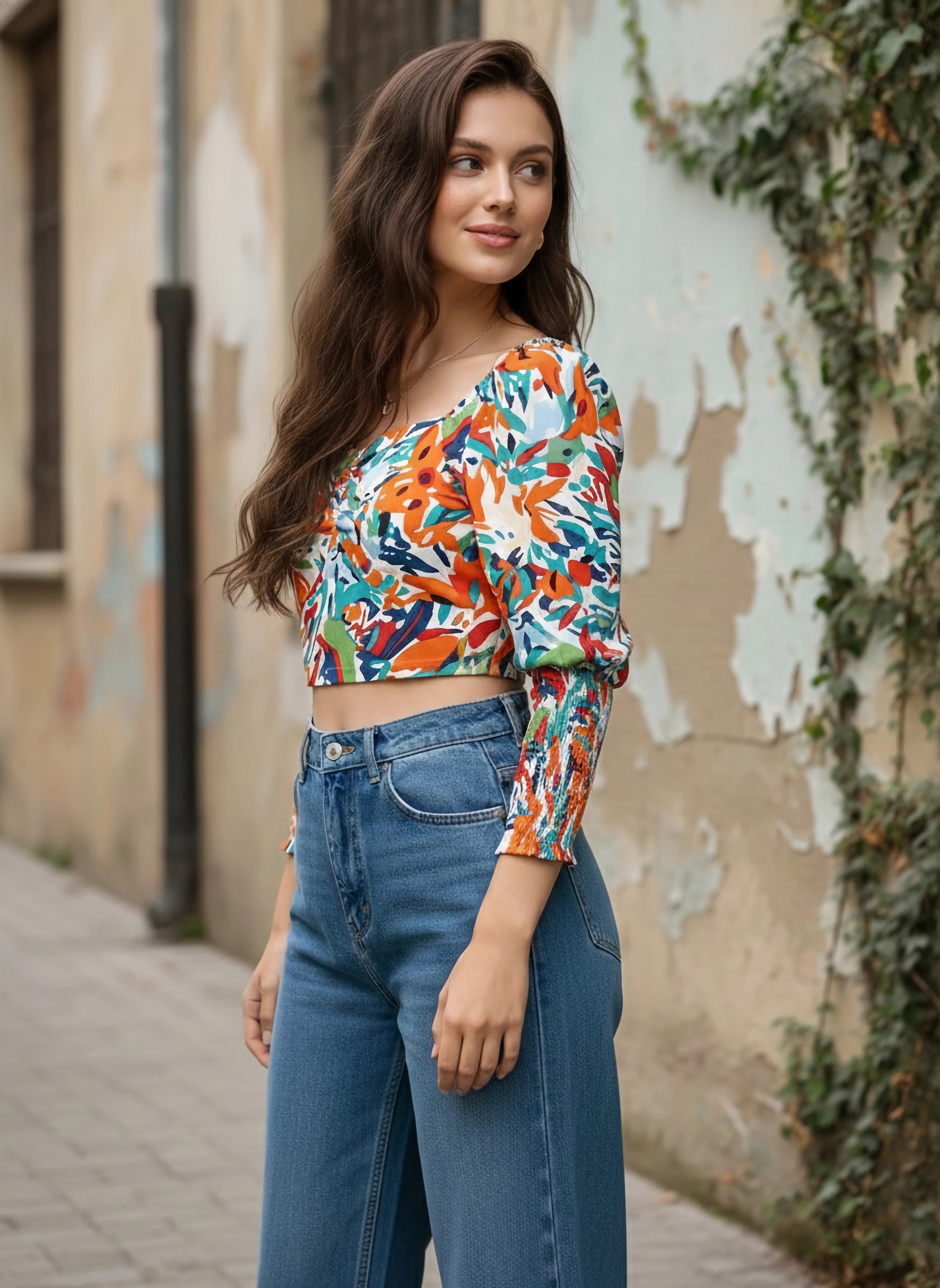 Bring vibrancy to your casual repertoire with the captivating glam of radiant prints just like this voguish White and Orange Print Sweetheart Neck Smocked Crepe Crop Top from Berrylush. Adorned with a lovely sweetheart neck design that gives your neckline a half-heart shape and adds a romantic essence to this top. Milled from crepe polyester fabric that lends this top anti-abrasion and anti-fade properties to maintain its brand-new look even after a wash. Comes with knitted and woven detailing to offer this top beautiful structural integrity along with optimal breathability. Team up this crop top with your favourite jeans, funky sneaker, cool sunglasses, and a classy side bag to create an enchanting look.