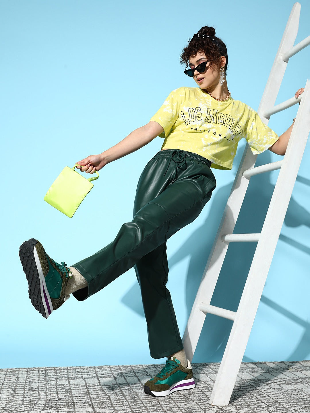 - Lime green and white tie-dye print gives away a ritzy and monochromatic vibe
