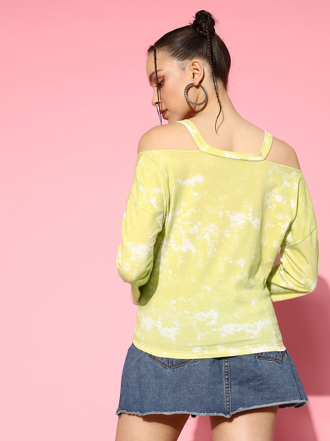 • Yellow and white tie-dye print gives this top artistic look with a luxurious vibe