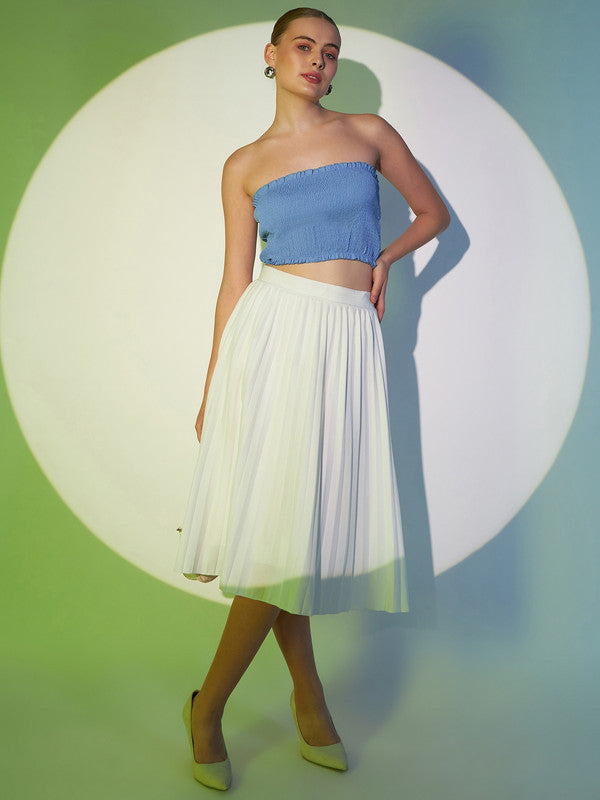 Berrylush Women Solid Light Blue Strapless Neck Sleeveless Backless Smocked Crop Tube Top