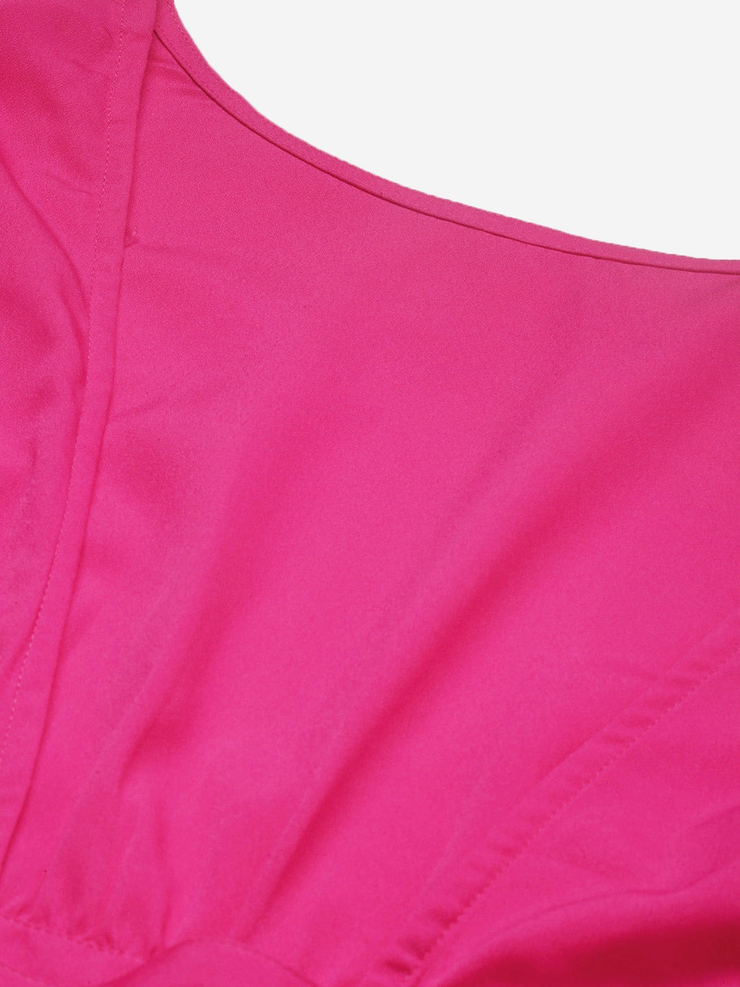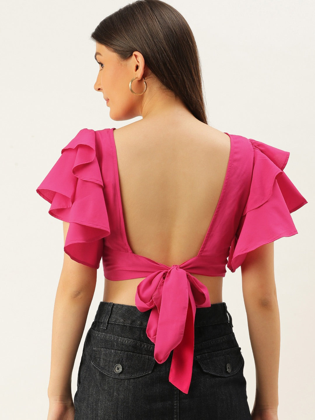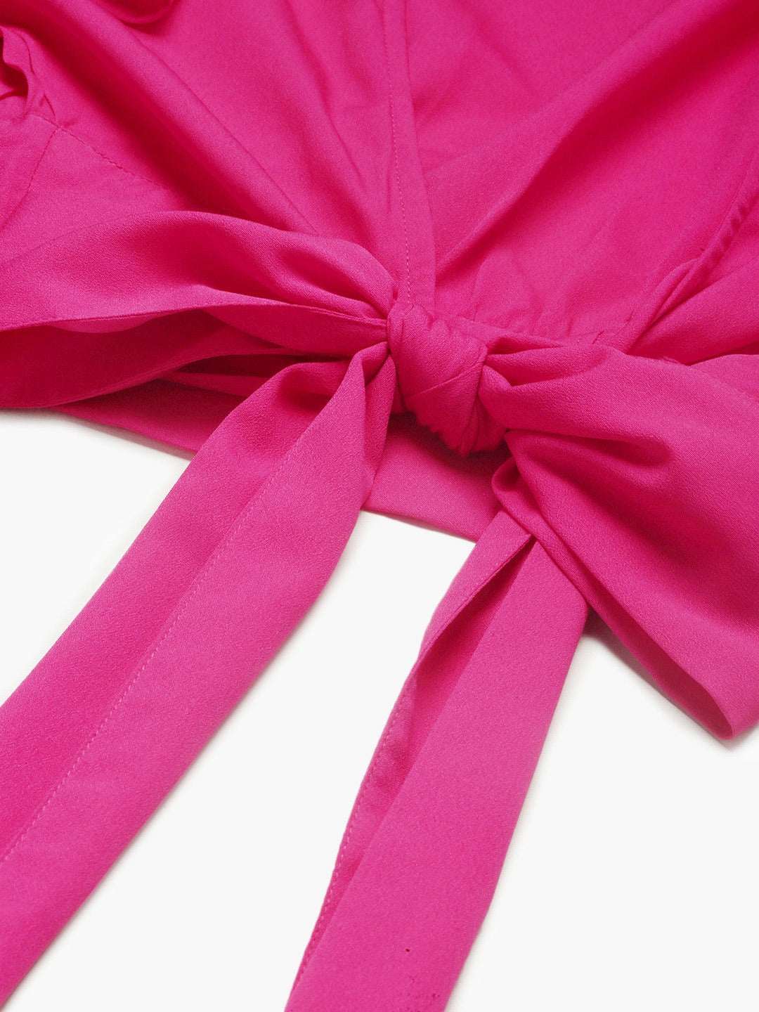 Berrylush Women Solid Hot Pink Open-Back Blouson Crop Top