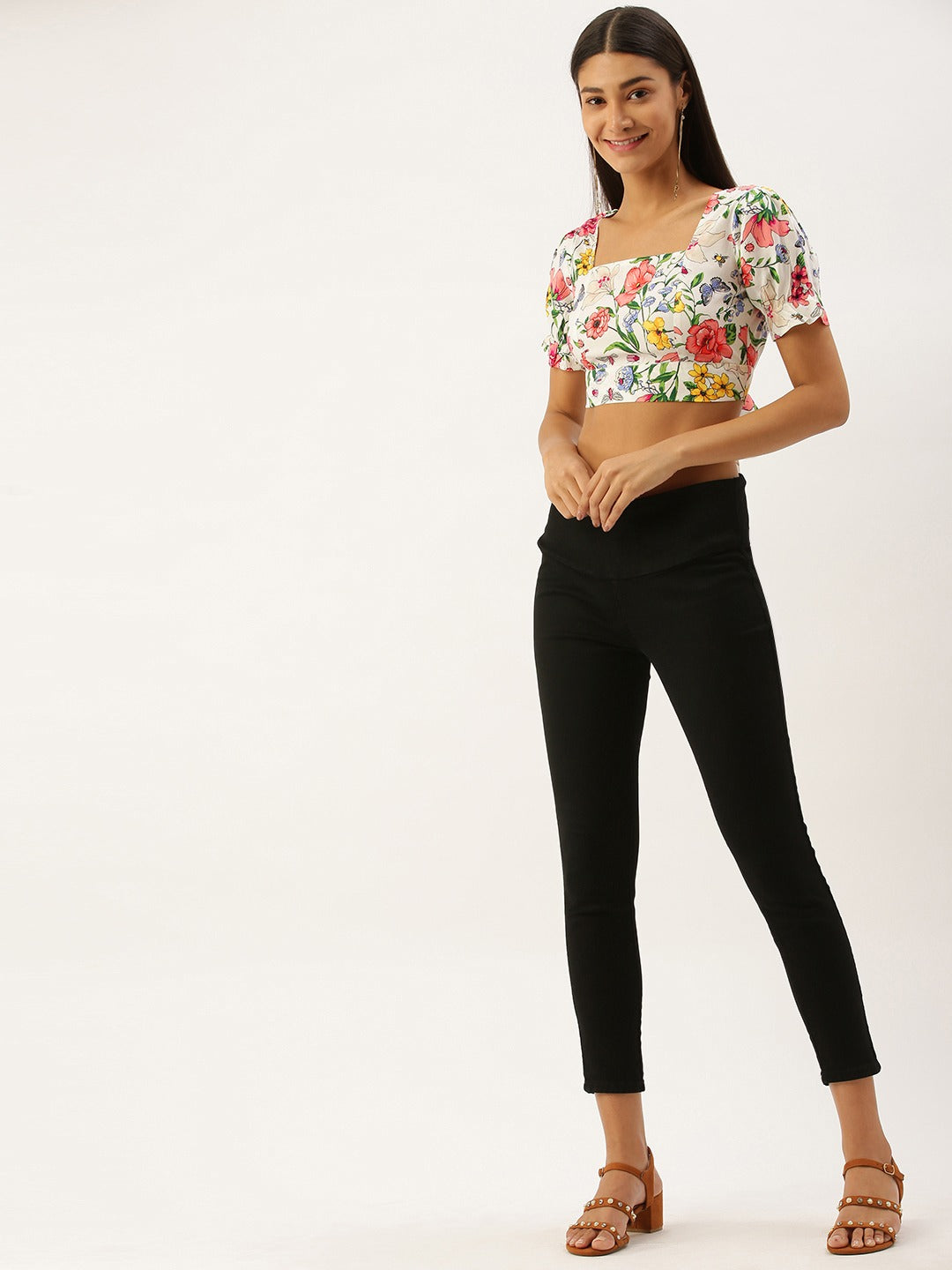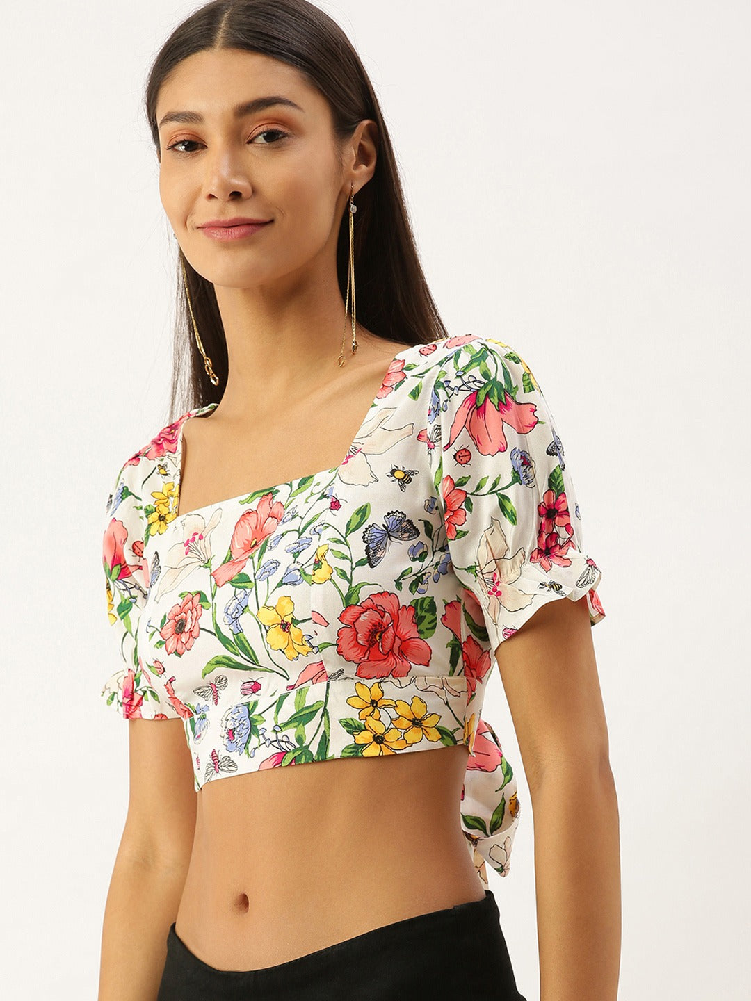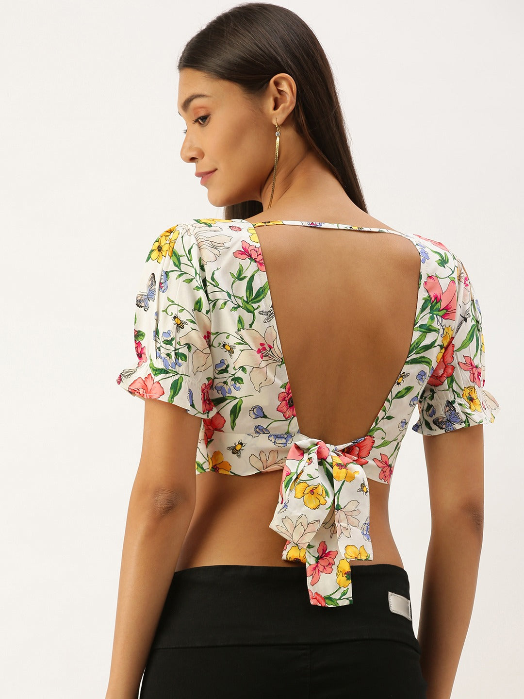 Try the all-season favorite western outfit, the Berrylush White Floral Printed Open Back Crop Top. The floral print has created a fascinating journey amongst the family of other floral outfits. If you prefer classy dressing style over contemporary fashion then this crop top going to quench your thirst. Its figure-flaunting open-back design is perhaps the best thing one can get out of designer wear that is crafted with a seductive long knot. With just adding pink high-waisted pants and a classy mini dark solid colored handbag, your appearance will recall a royal ecstasy. Even if you are going for casual lunch, dress up with this elegant and leaves your voguish footprints for the world.