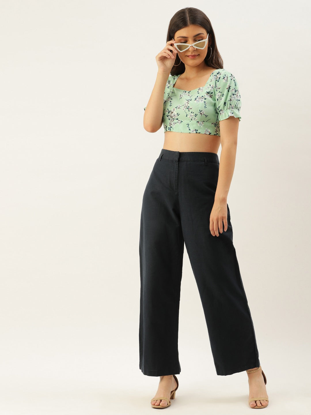 Style the exquisite western outfit by embracing the Berrylush Green Floral Printed Open Back Crop Top. The charming floral print is the sweetest touch-up that makes you look adorable. The gorgeous square neckline along with the short puffed sleeves purely retains the elegance in femininity. Its figure-flaunting open-back design is perhaps the best thing one can get out of designer wear that is crafted with a seductive long knot. With just adding high-waisted flared black pants and a classy miny handbag, your appearance will recall a royal mural. Never allow an ill-fashioned outfit to dominate over your glow rather go wild and embrace this lovely floral crop top with modish back from Berrylush.