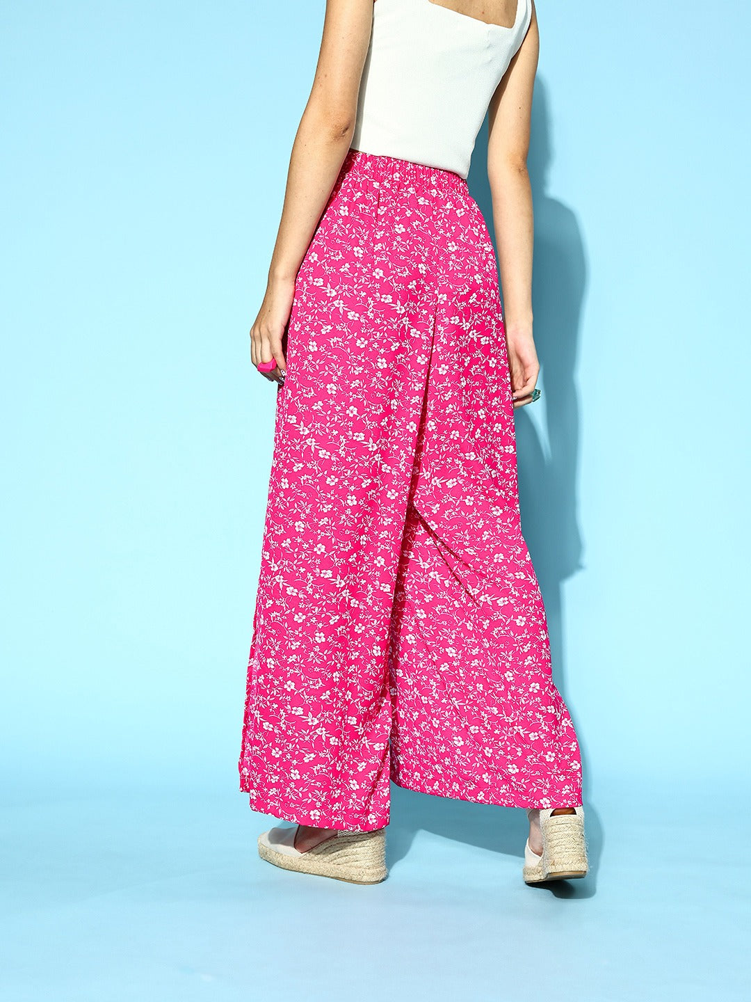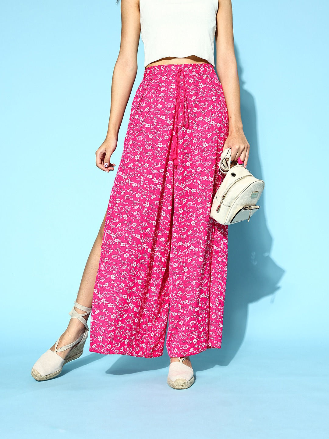 Summer indicates the need for a refreshing upgrade to your casual capsule with trendy options just like these adorable Pink Floral Print Mid-Slit Pleated Regular Trousers designed by Berrylush. Tailored with a loose fit that gives these trousers a relaxing frame with a spacious and airy feel to your legs. Styled with a mid-rise waist that lends you a slimmer and taller appearance by elegantly hiding your bulging area. Moreover, the drawstring closure offers these trousers an easy-to-wear style with desired fitting and ornamental sheen. Complete your outing look glamorously by pairing these trousers with your favourite top, cute sandals, butter tassel earrings, and a chic side bag.