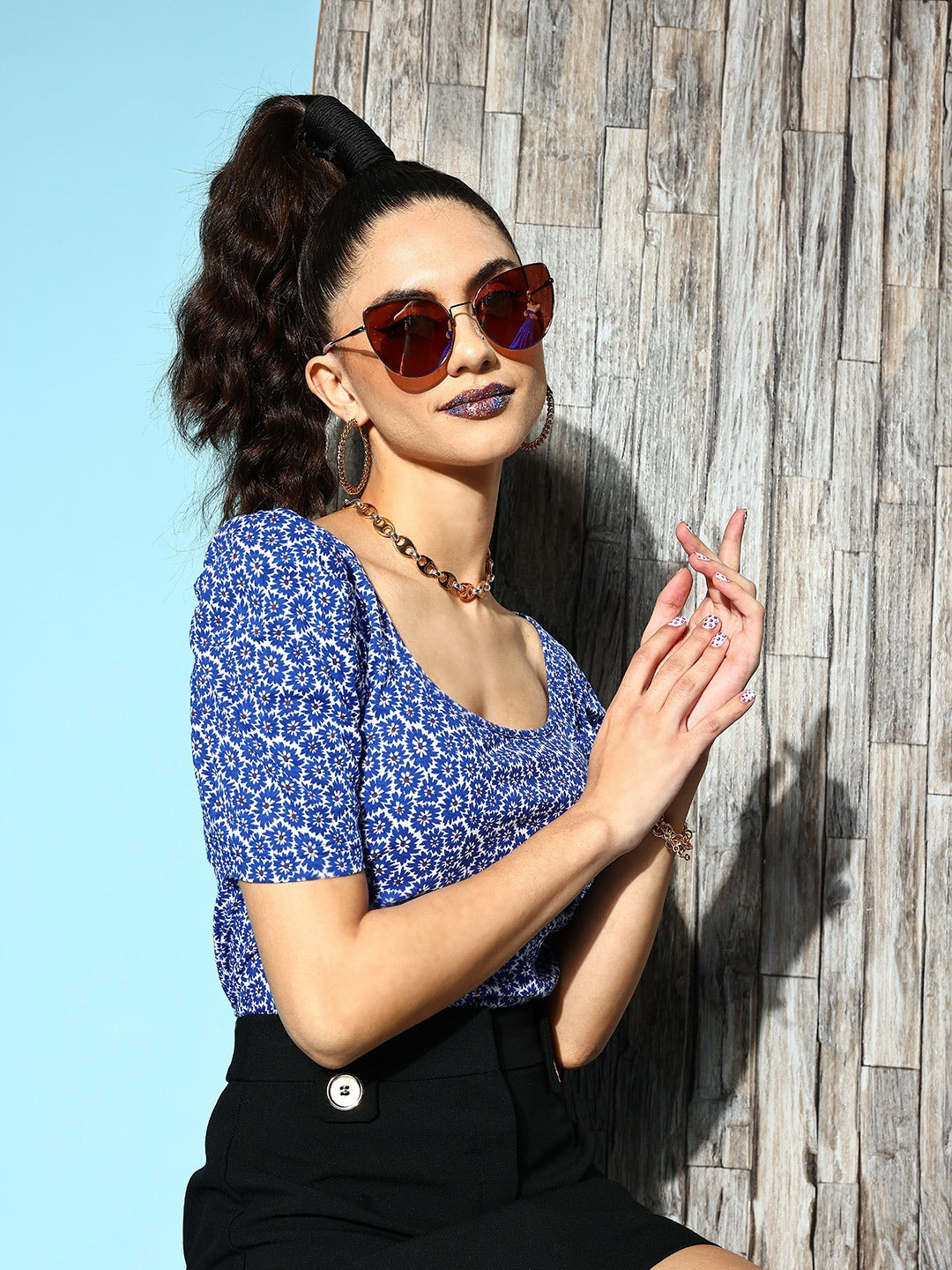 • A mixture of blue and white shades gives this top a vibrant and pleasing design