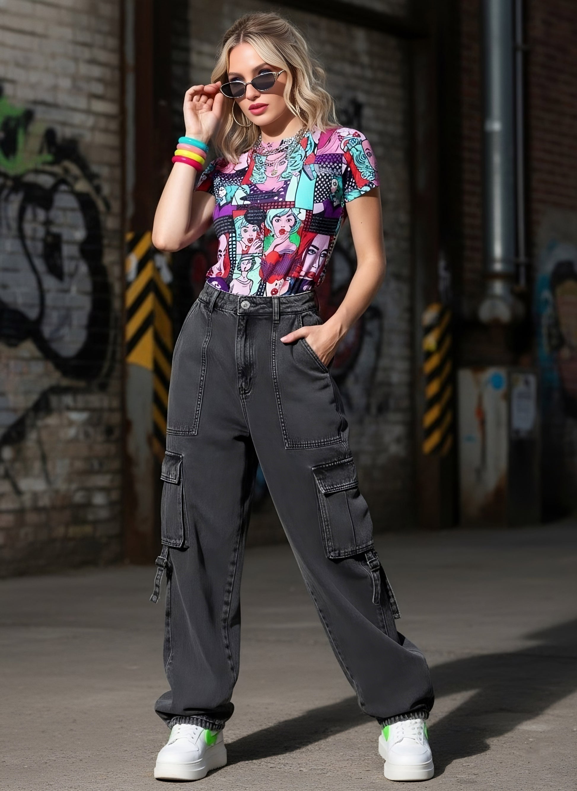 All that your capsule closet need is a burst of colour and vibrancy, so lay your hands on this charming Printed High Neck T-Shirt introduced by Berrylush. Adorned with a captivating multicoloured graphic print all over that gives this t-shirt a radiant appearance with an eye-catching design. Comes with knitted detailing that enhances the structural integrity of this t-shirt to withstand tear issues. In addition, short-regular sleeves present a practical design of this t-shirt with attractive coverage to your arms. Walk out looking gorgeous by wearing this t-shirt with high-waist trousers, a pair of black canvas, a coot black hat, and a matching waist bag.
