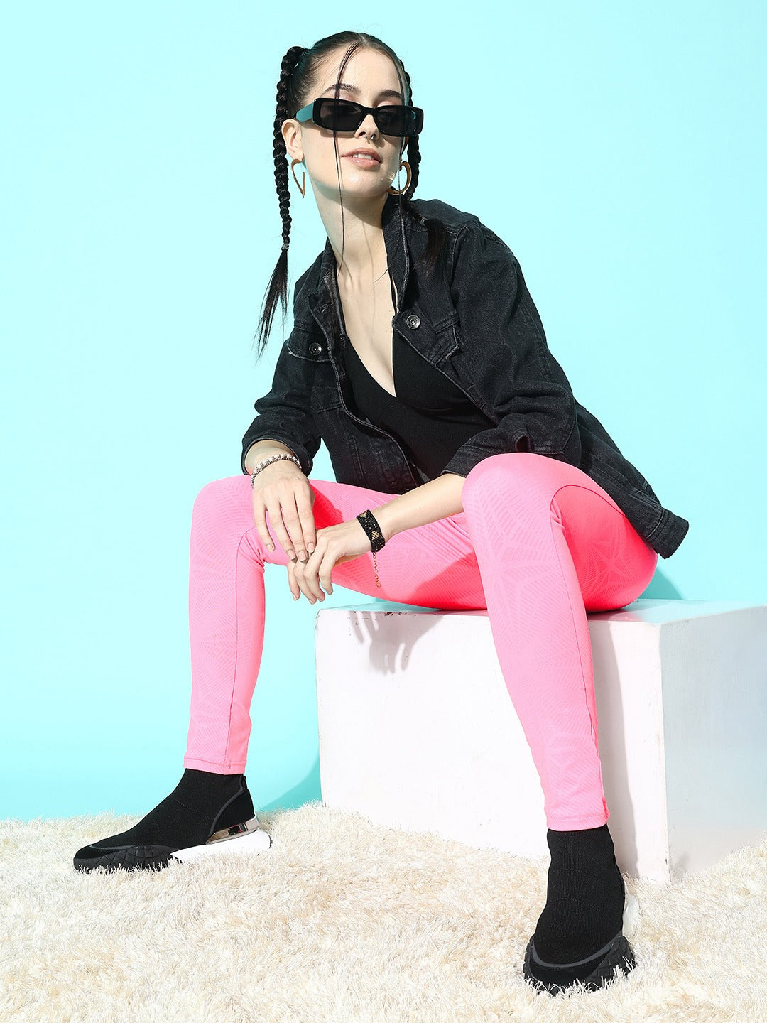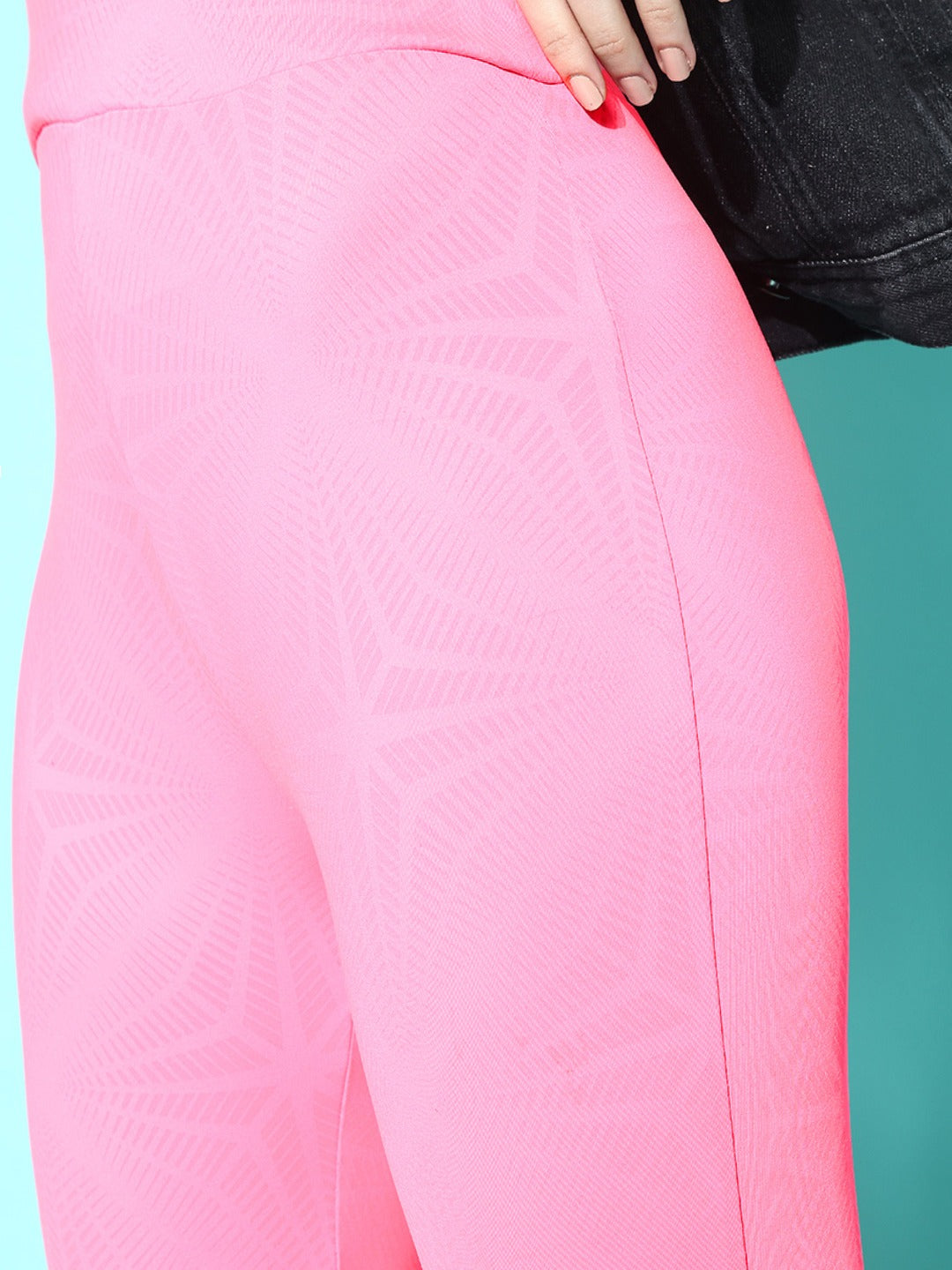 Berrylush Women Solid Pink Super Stretchy & High Elastic Waisted Sports Tights