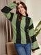 Berrylush Women Green & Black Frenchy Two-Tone Printed Round Neck Drop-Shoulder Sleeves Ribbed Hem Regular Sweater