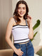 Berrylush Women Striped Orange & Black Square Neck Sleeveless Contrast Trim Acrylic Ribbed Hem Crop Sweater