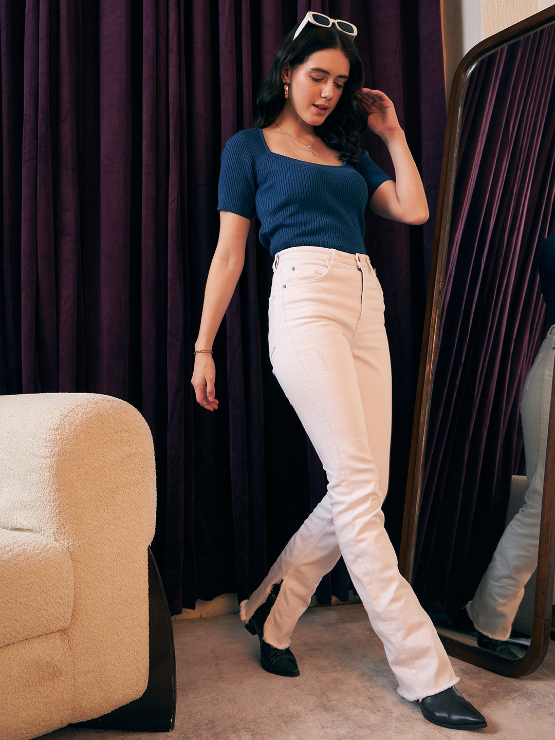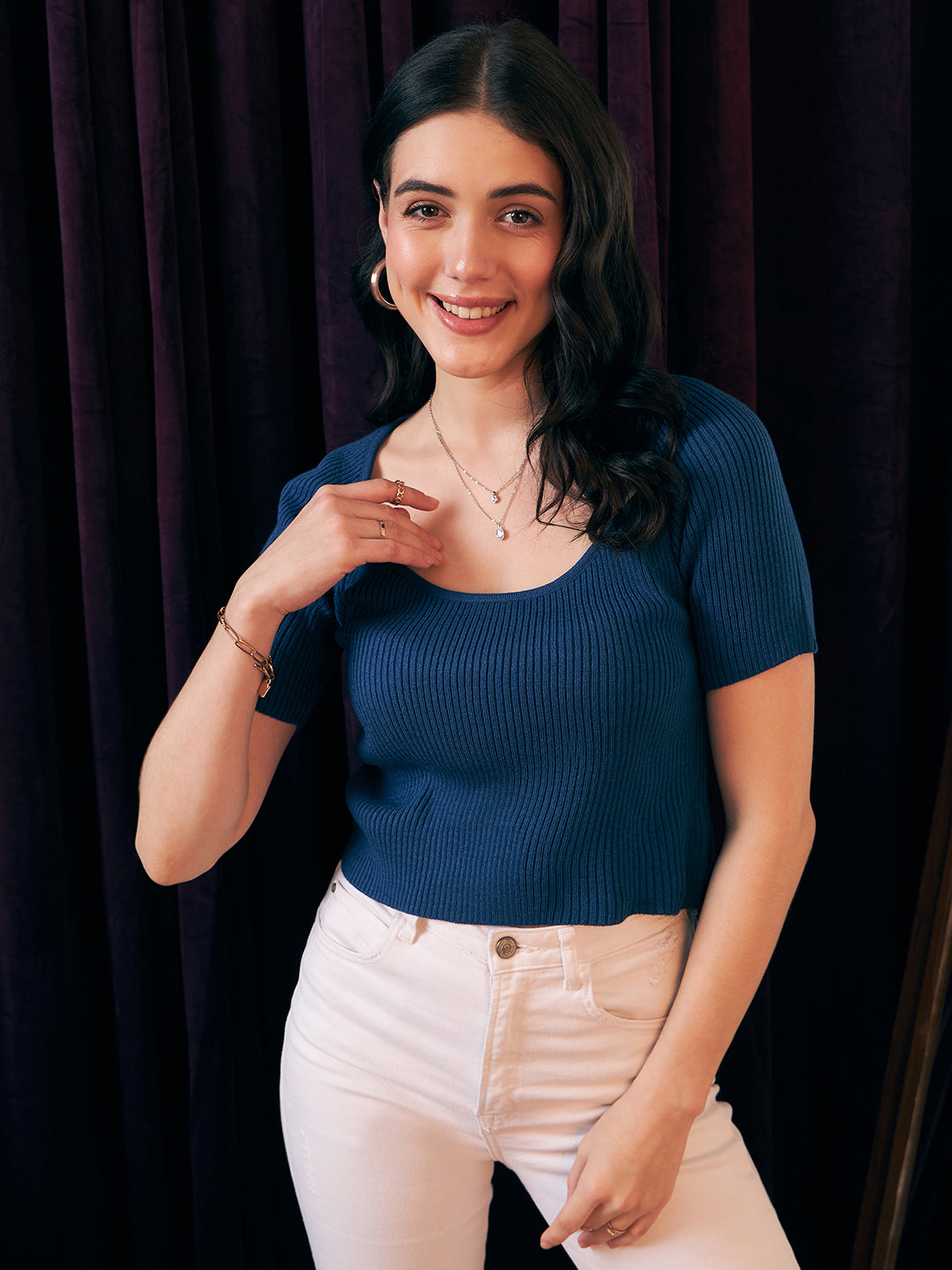- The cropped length gives an alluring exposure and highlights your curves