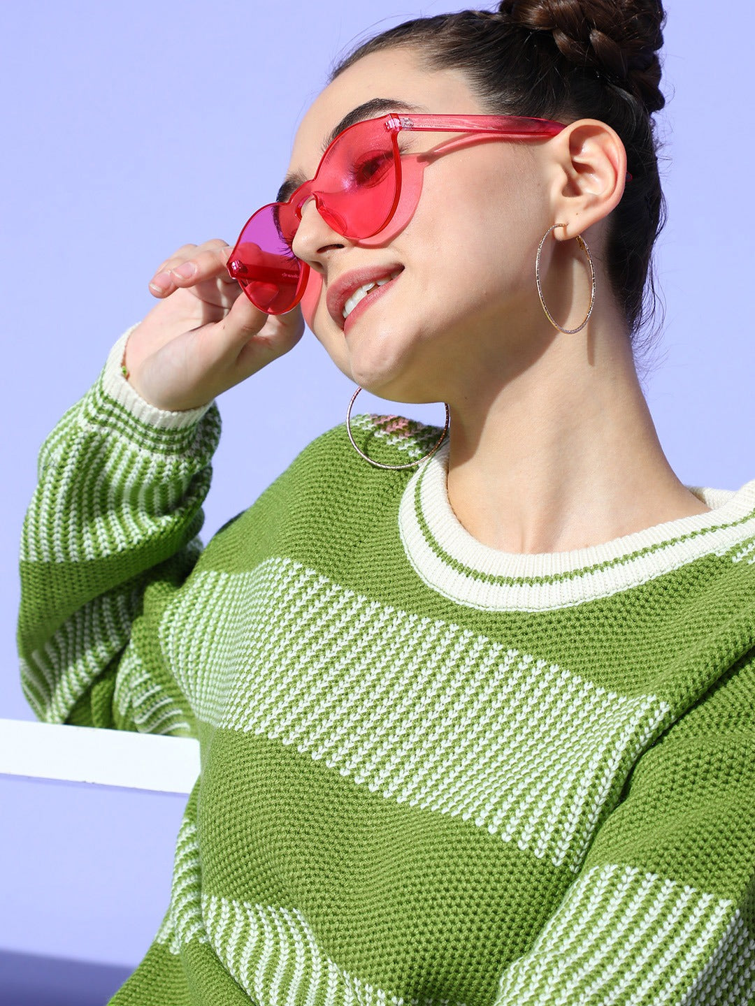 • The green and white striped pattern gives this pullover a dash of eye-popping style