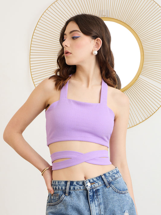Berrylush BASICS Women Purple Solid Shoulder Straps Styled Back Crop Top